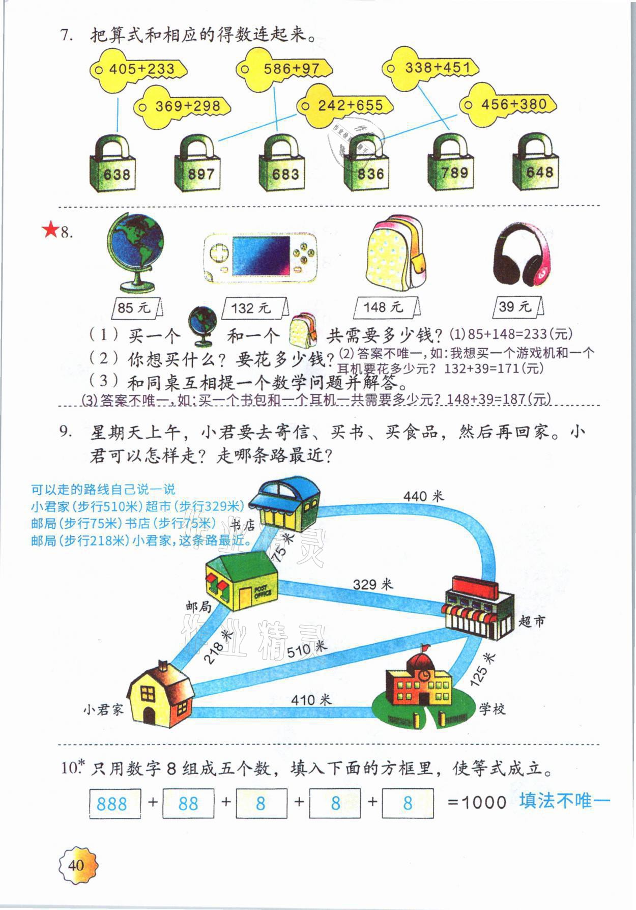 2021年教材课本三年级数学上册人教版参考答案第39页