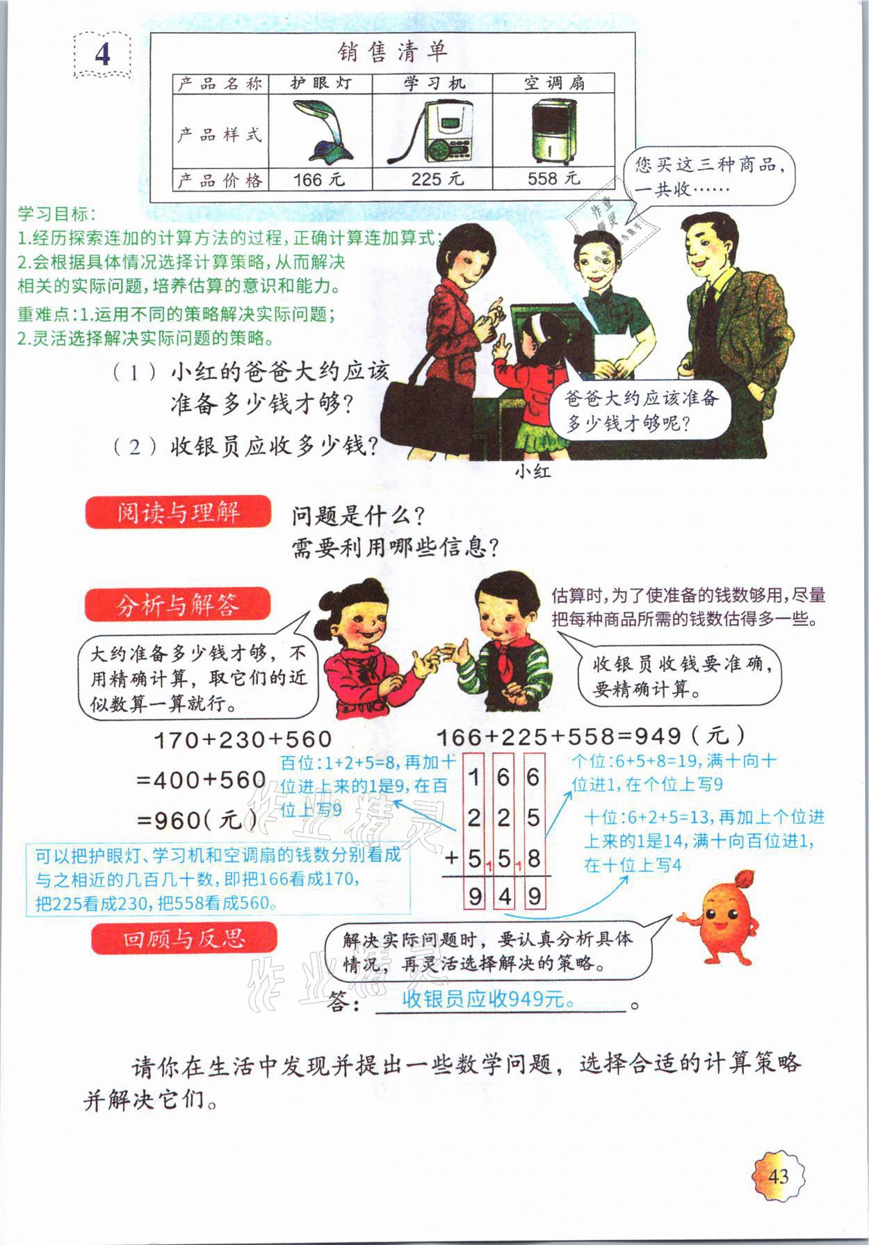 2021年教材课本三年级数学上册人教版参考答案第42页