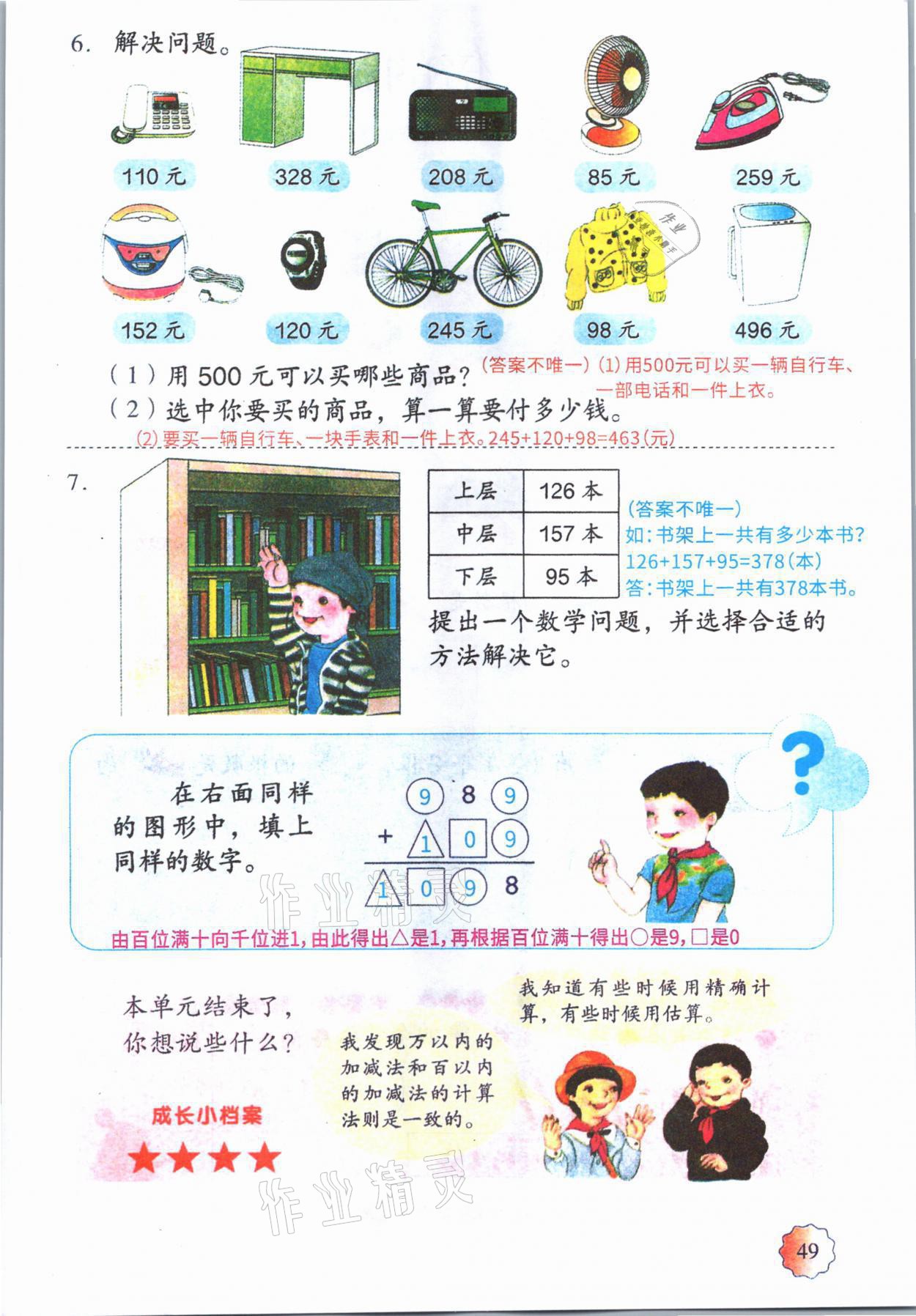 2021年教材课本三年级数学上册人教版参考答案第48页