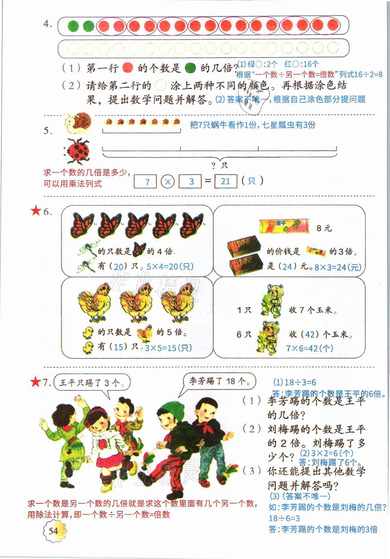 2021年教材课本三年级数学上册人教版参考答案第53页