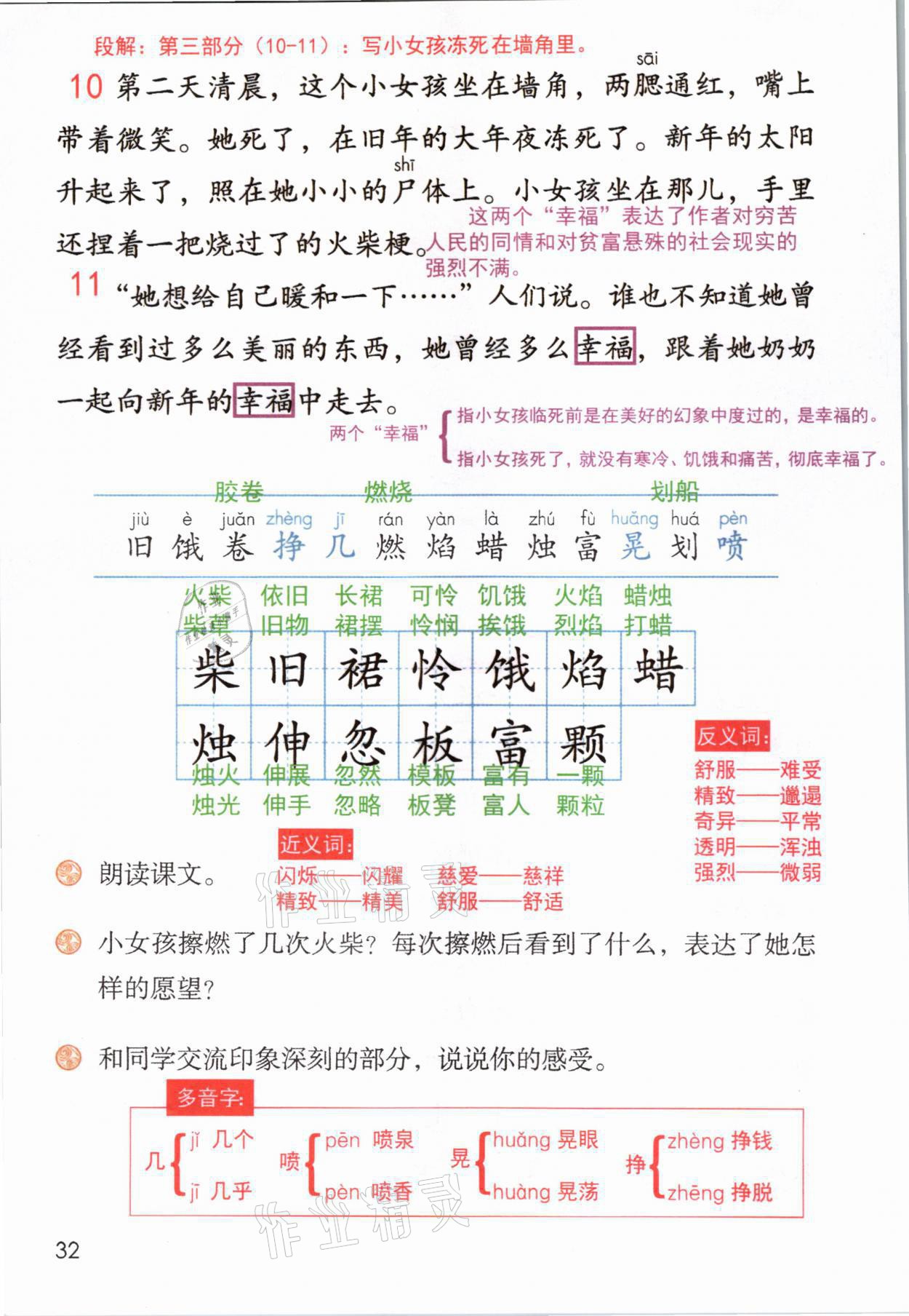 2021年教材课本三年级语文上册人教版参考答案第32页