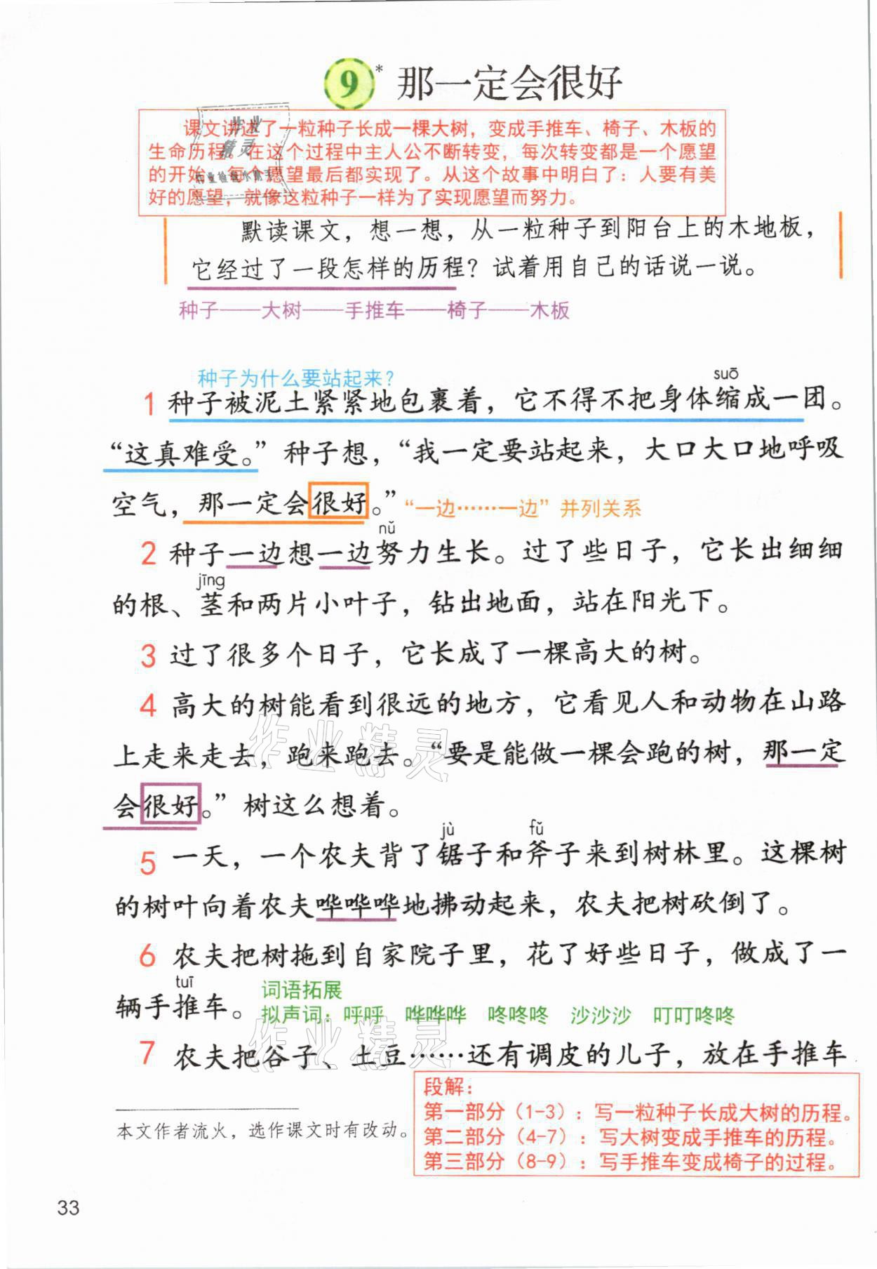 2021年教材课本三年级语文上册人教版参考答案第33页