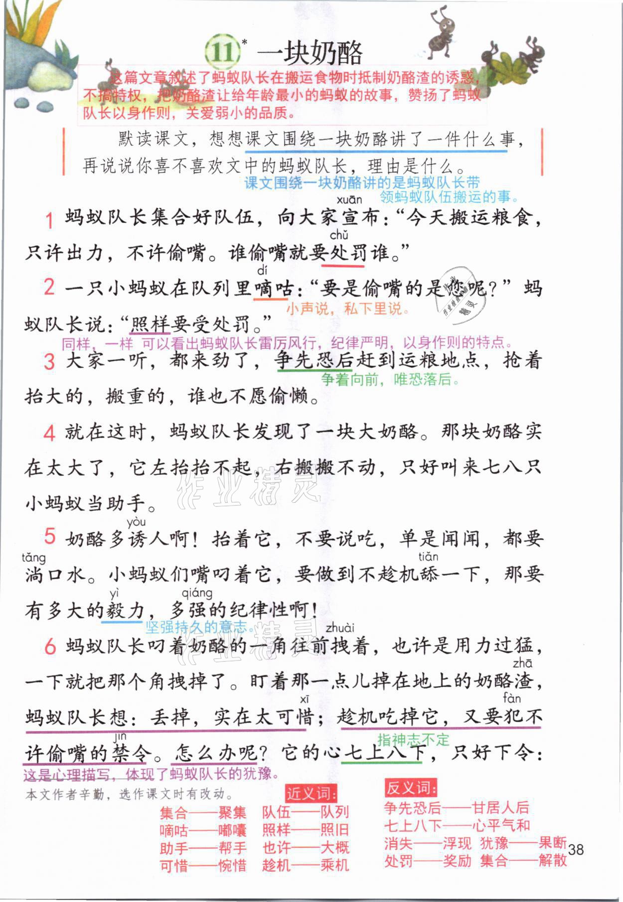 2021年教材课本三年级语文上册人教版参考答案第38页