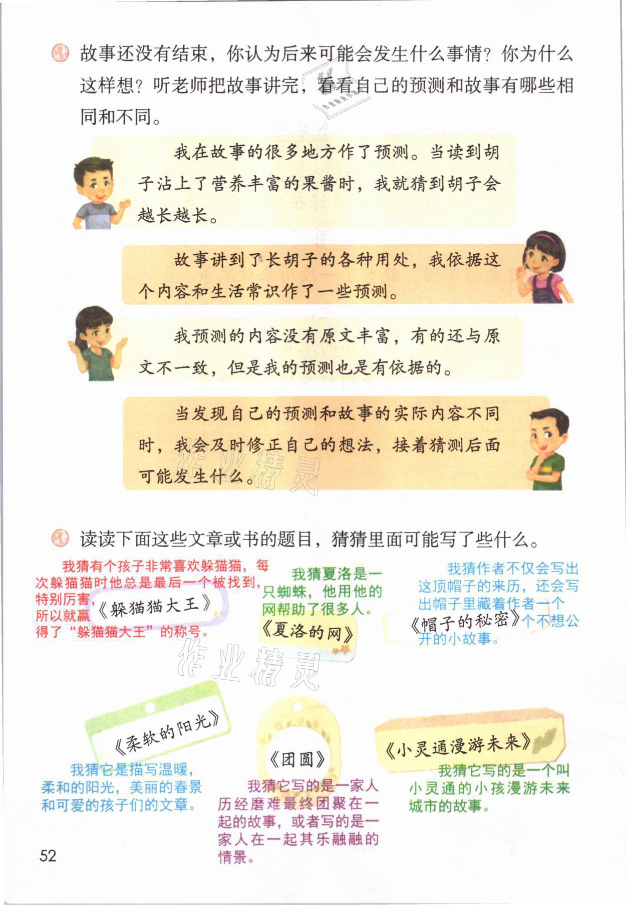 2021年教材课本三年级语文上册人教版参考答案第52页