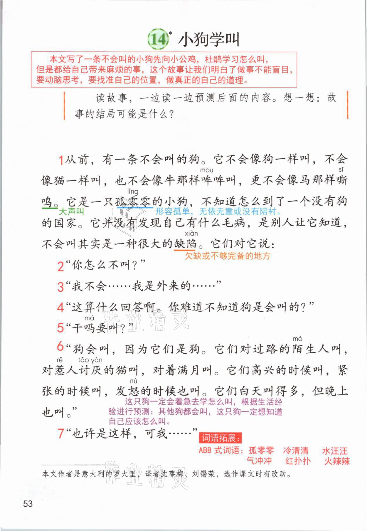 2021年教材课本三年级语文上册人教版参考答案第53页