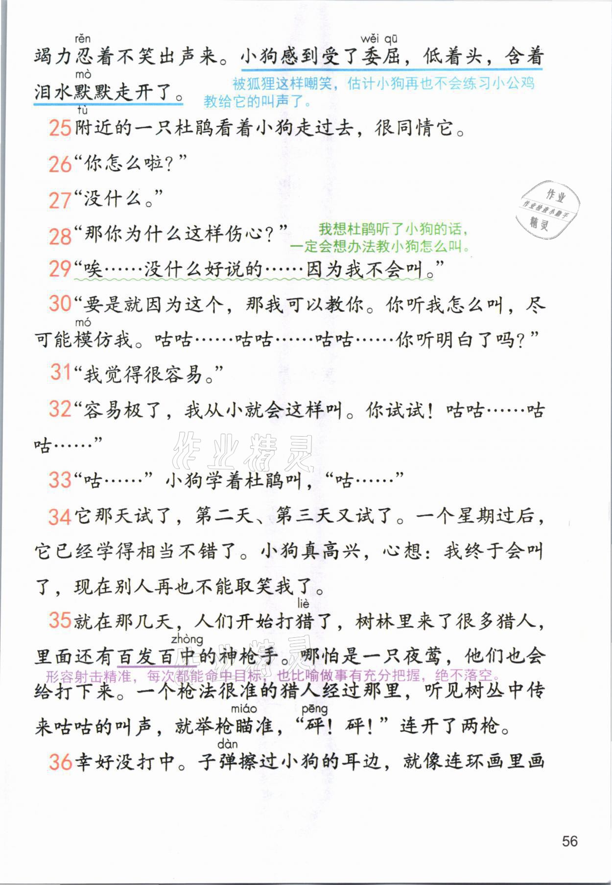 2021年教材课本三年级语文上册人教版参考答案第56页