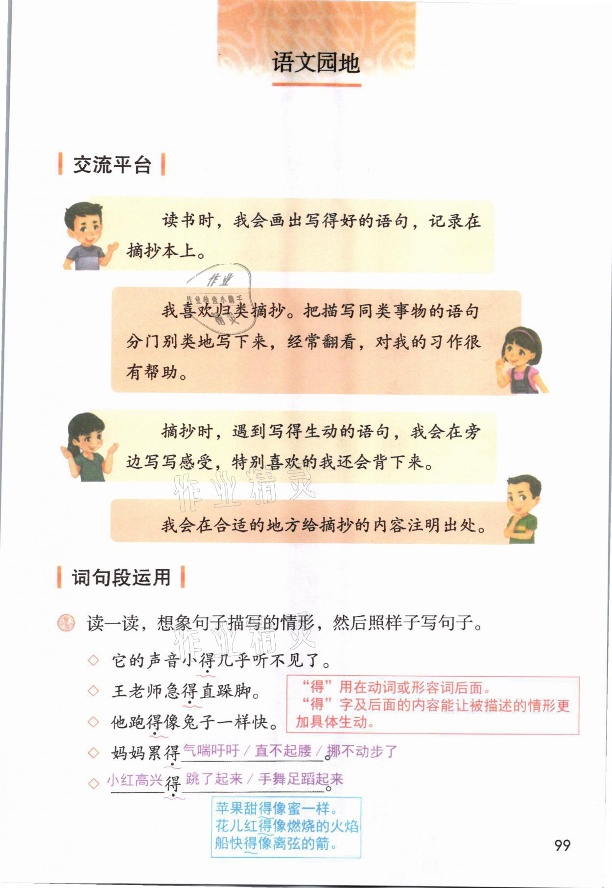 2021年教材课本三年级语文上册人教版参考答案第99页