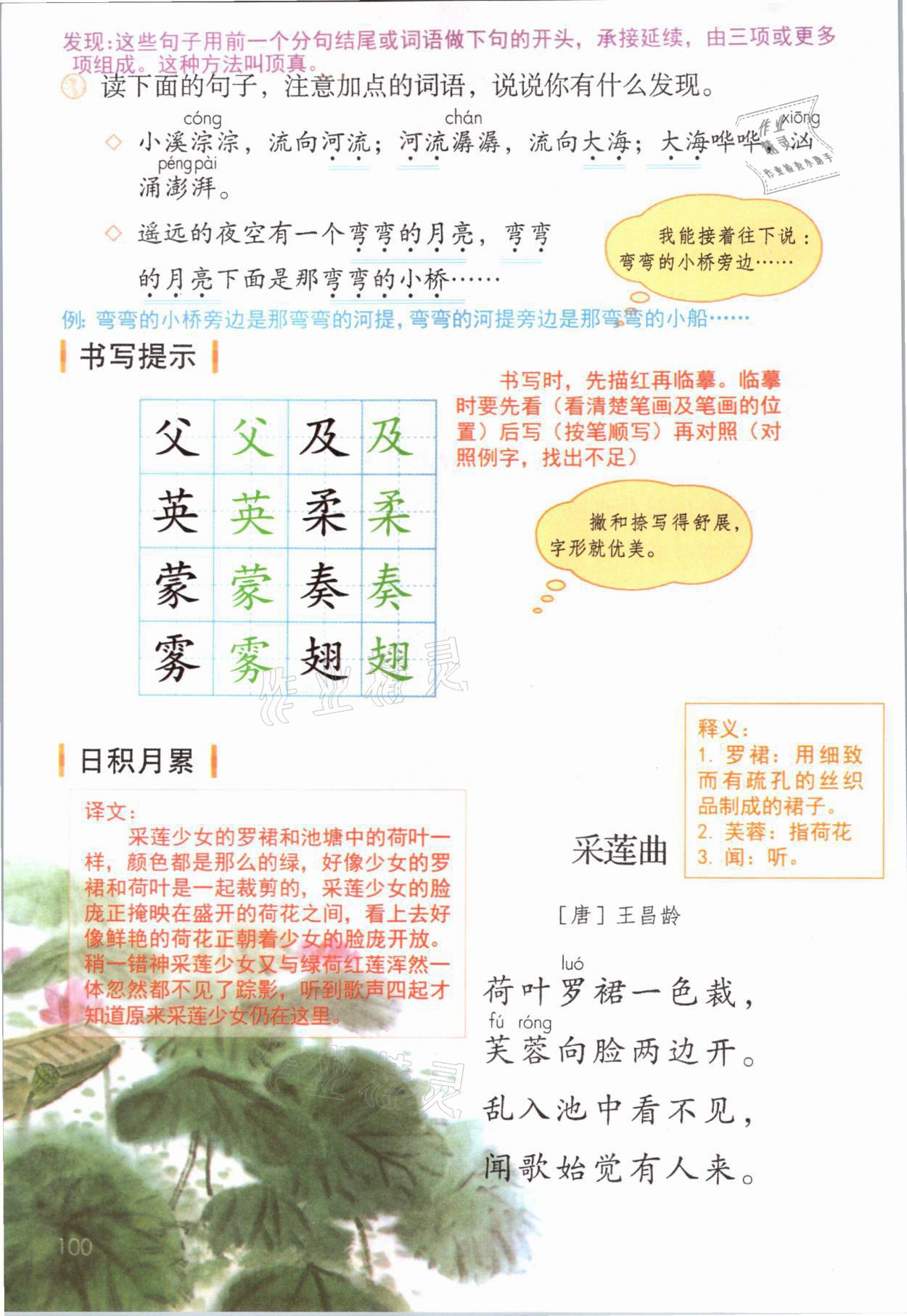 2021年教材课本三年级语文上册人教版参考答案第100页