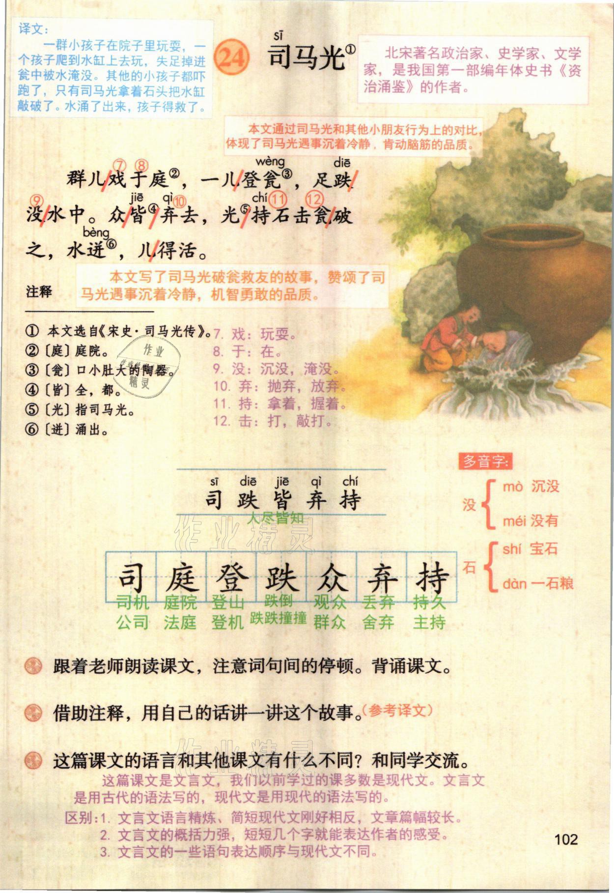 2021年教材课本三年级语文上册人教版参考答案第102页