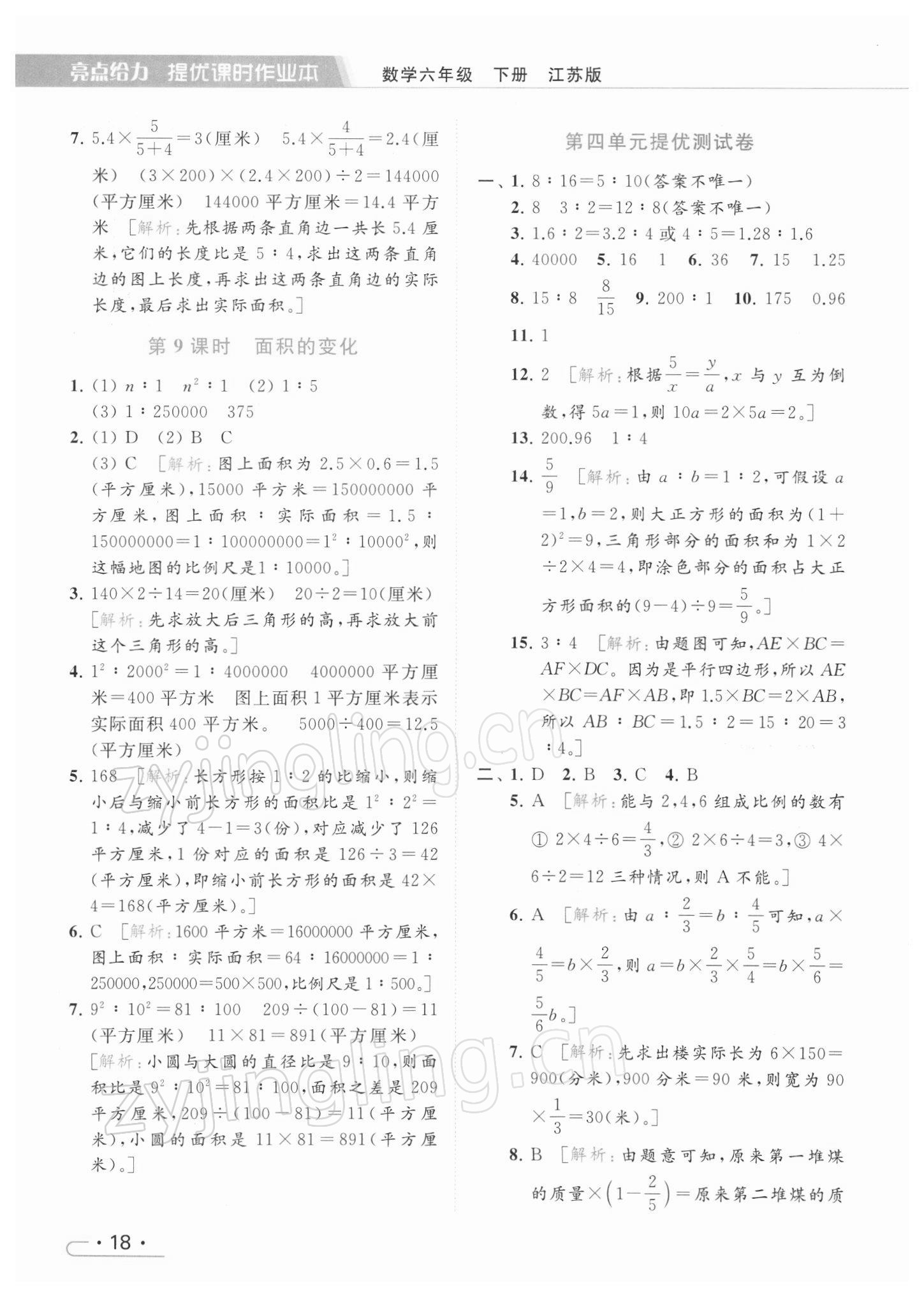 2022年亮点给力提优课时作业本六年级数学下册江苏版参考答案第18页