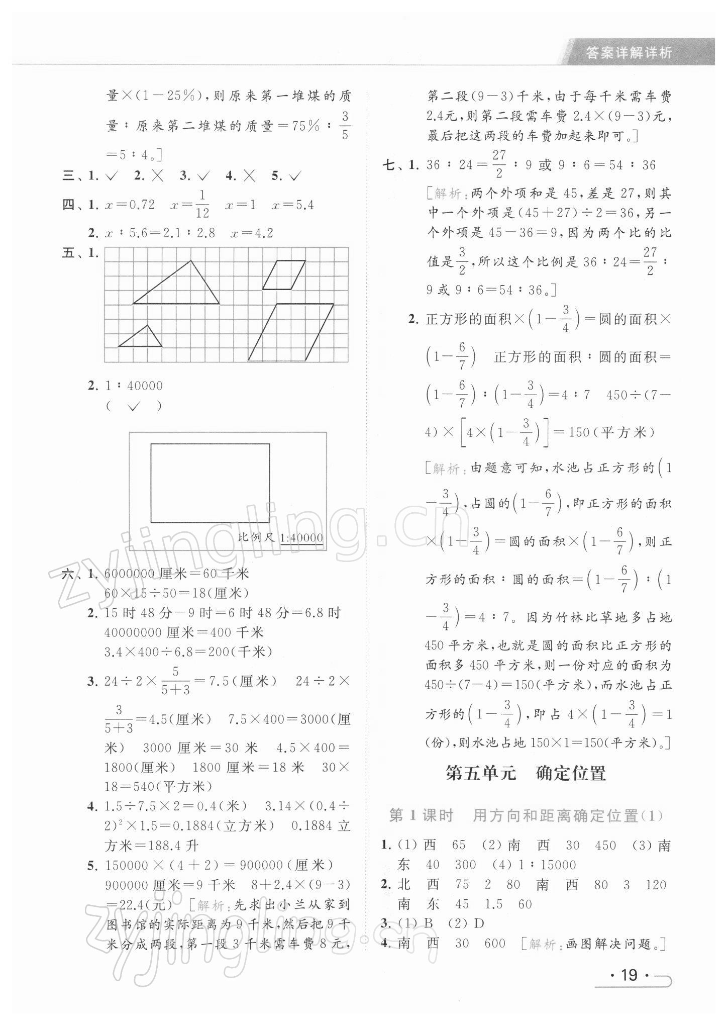 2022年亮点给力提优课时作业本六年级数学下册江苏版参考答案第19页