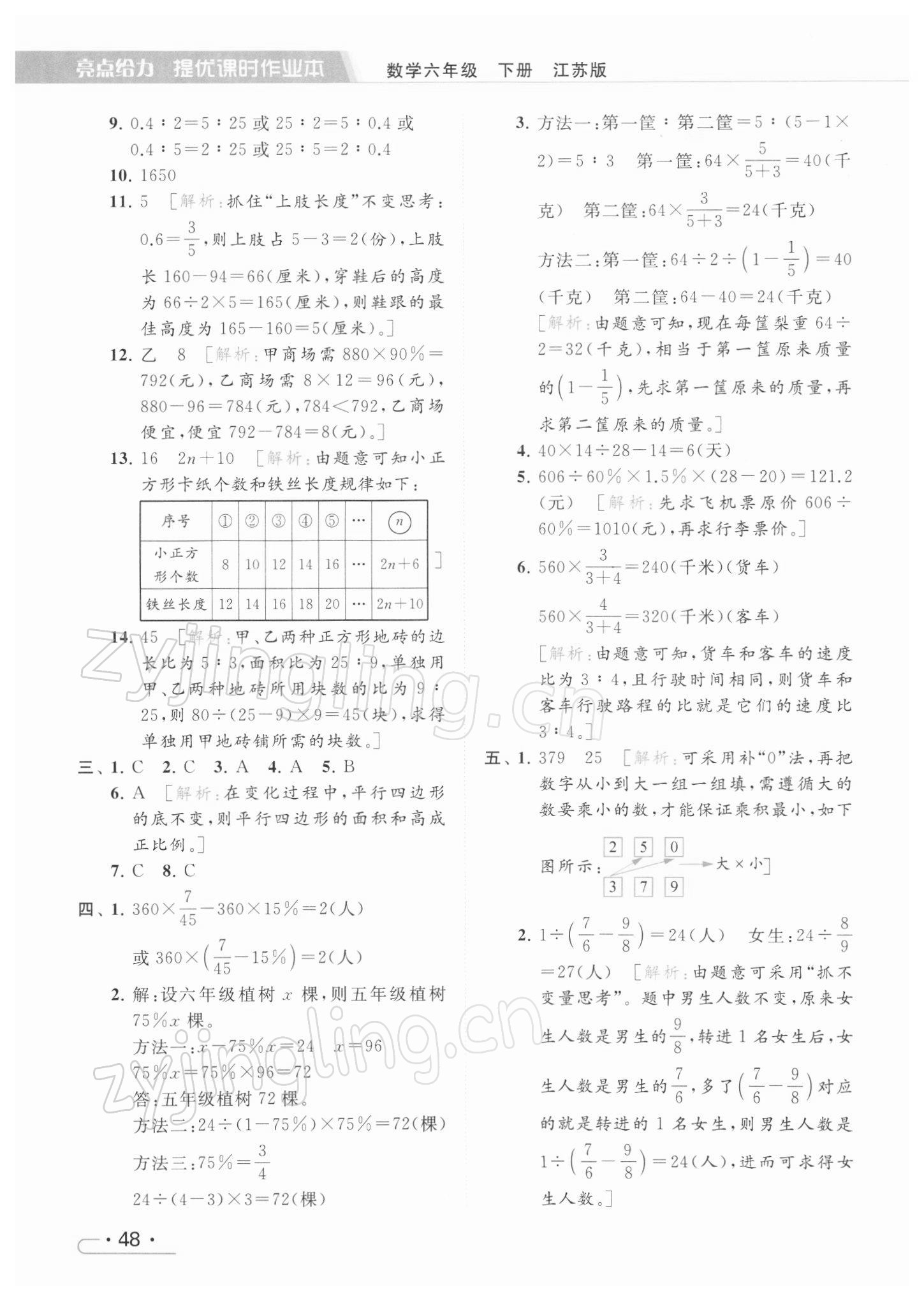 2022年亮点给力提优课时作业本六年级数学下册江苏版参考答案第48页