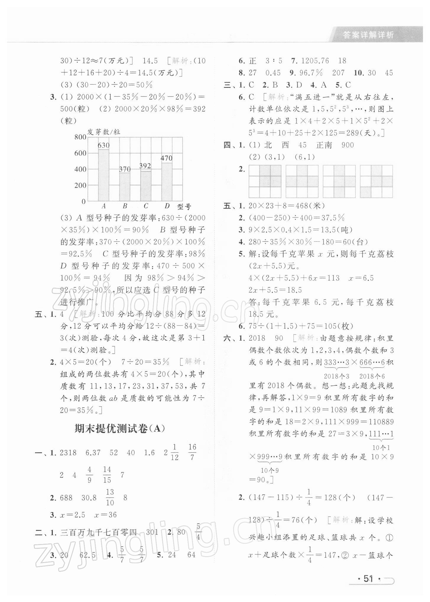 2022年亮点给力提优课时作业本六年级数学下册江苏版参考答案第51页