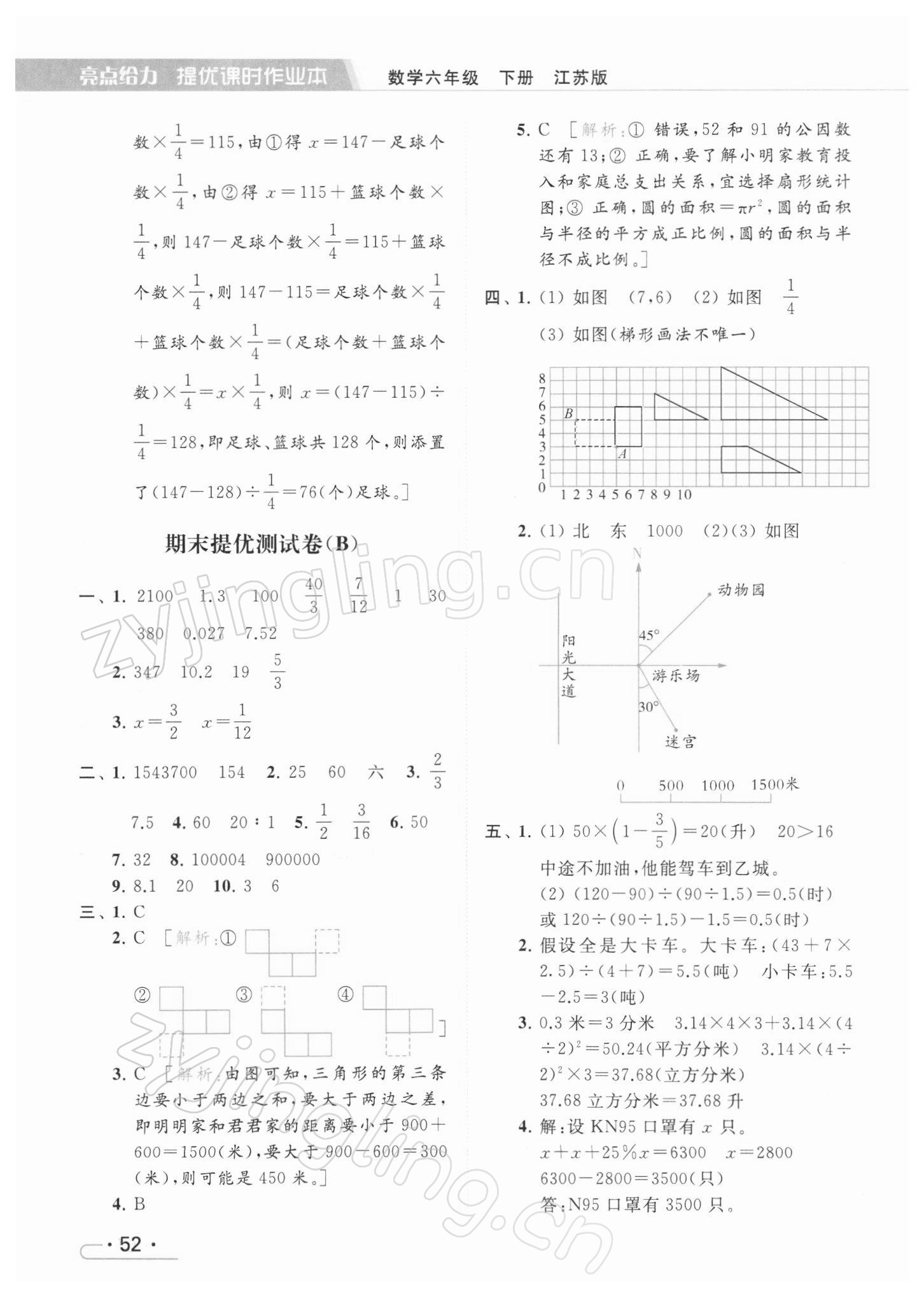 2022年亮点给力提优课时作业本六年级数学下册江苏版参考答案第52页