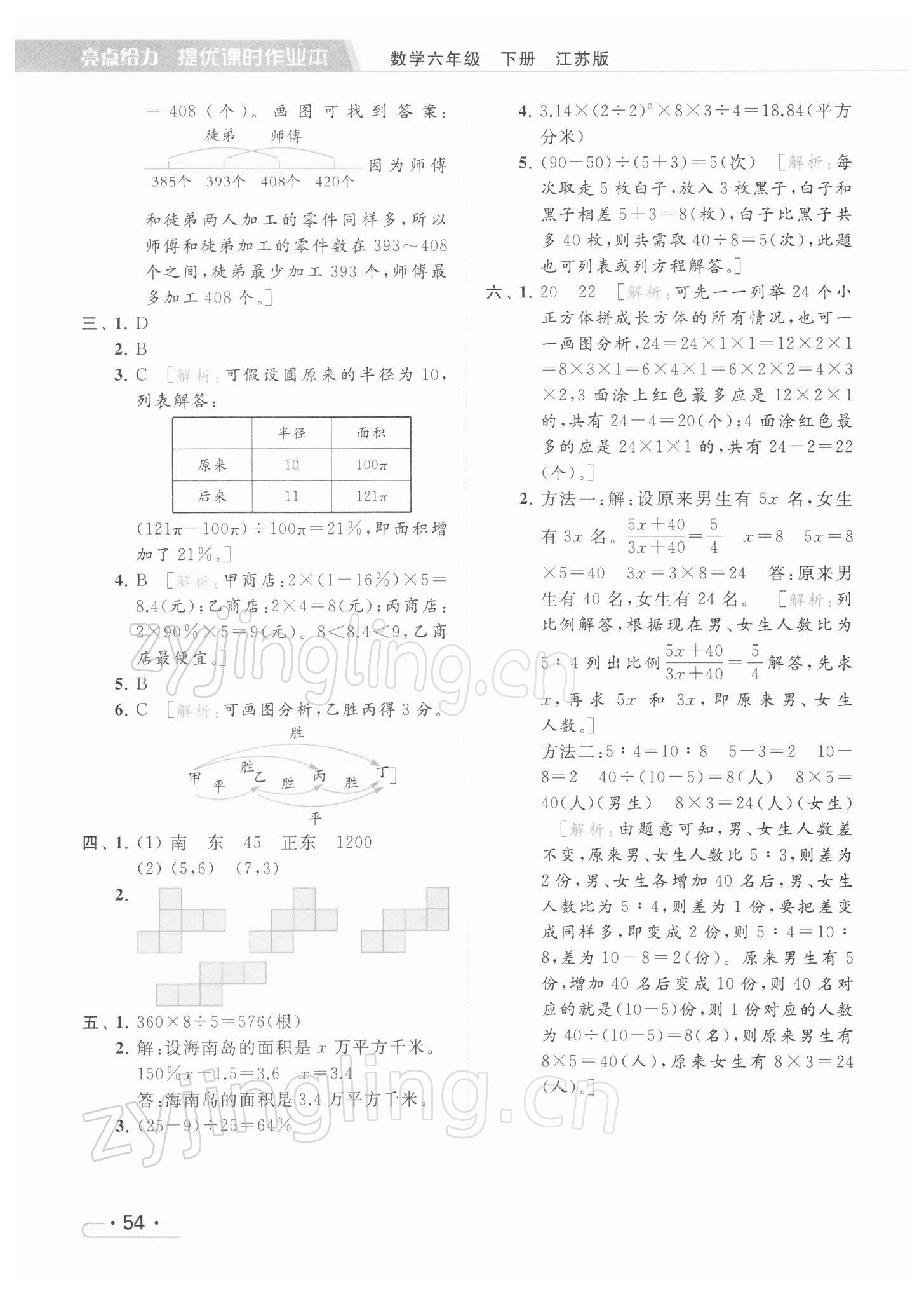 2022年亮点给力提优课时作业本六年级数学下册江苏版参考答案第54页