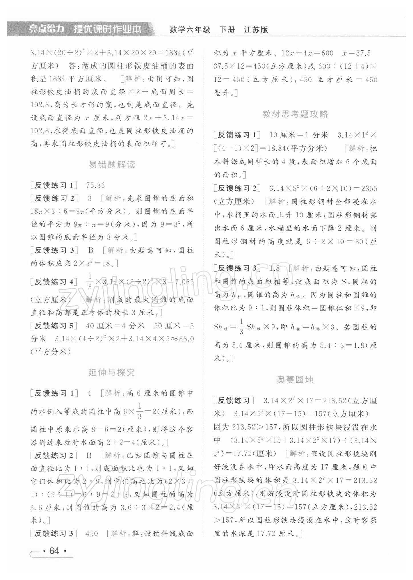 2022年亮点给力提优课时作业本六年级数学下册江苏版参考答案第57页