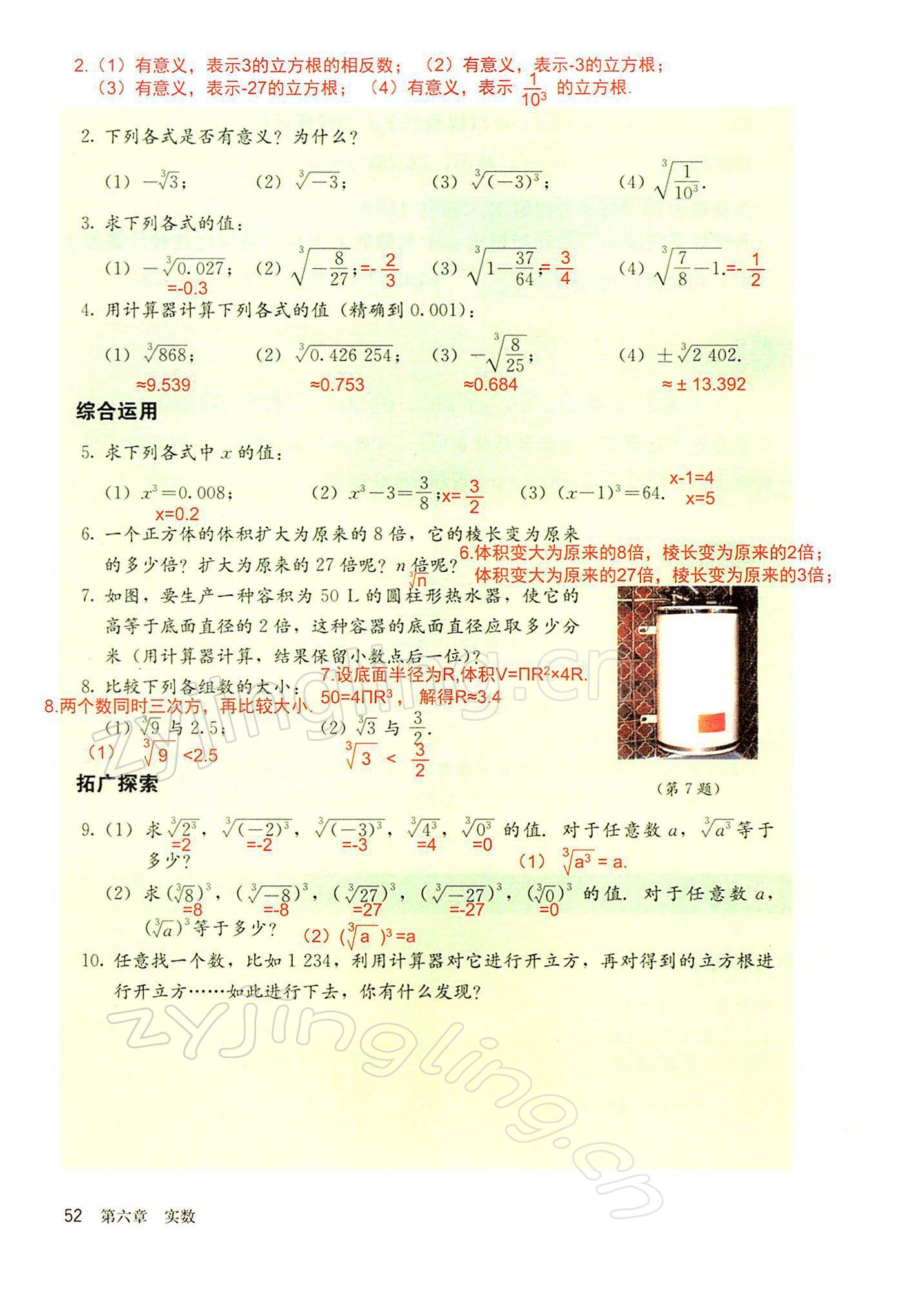 2022年教材课本七年级数学下册人教版参考答案第52页