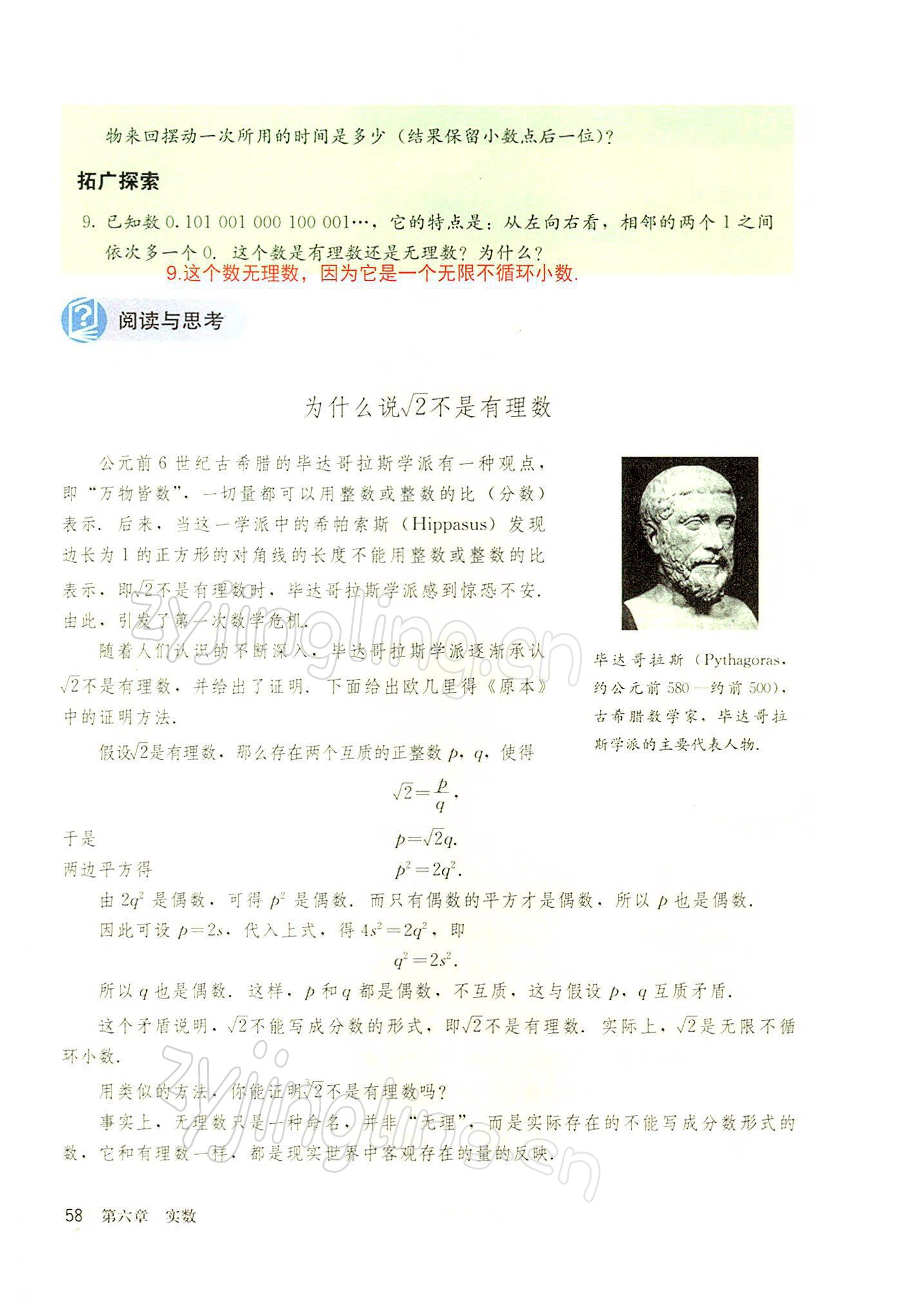 2022年教材课本七年级数学下册人教版参考答案第58页