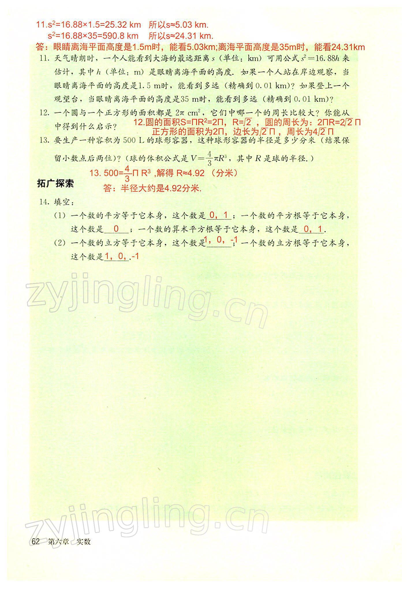 2022年教材课本七年级数学下册人教版参考答案第62页