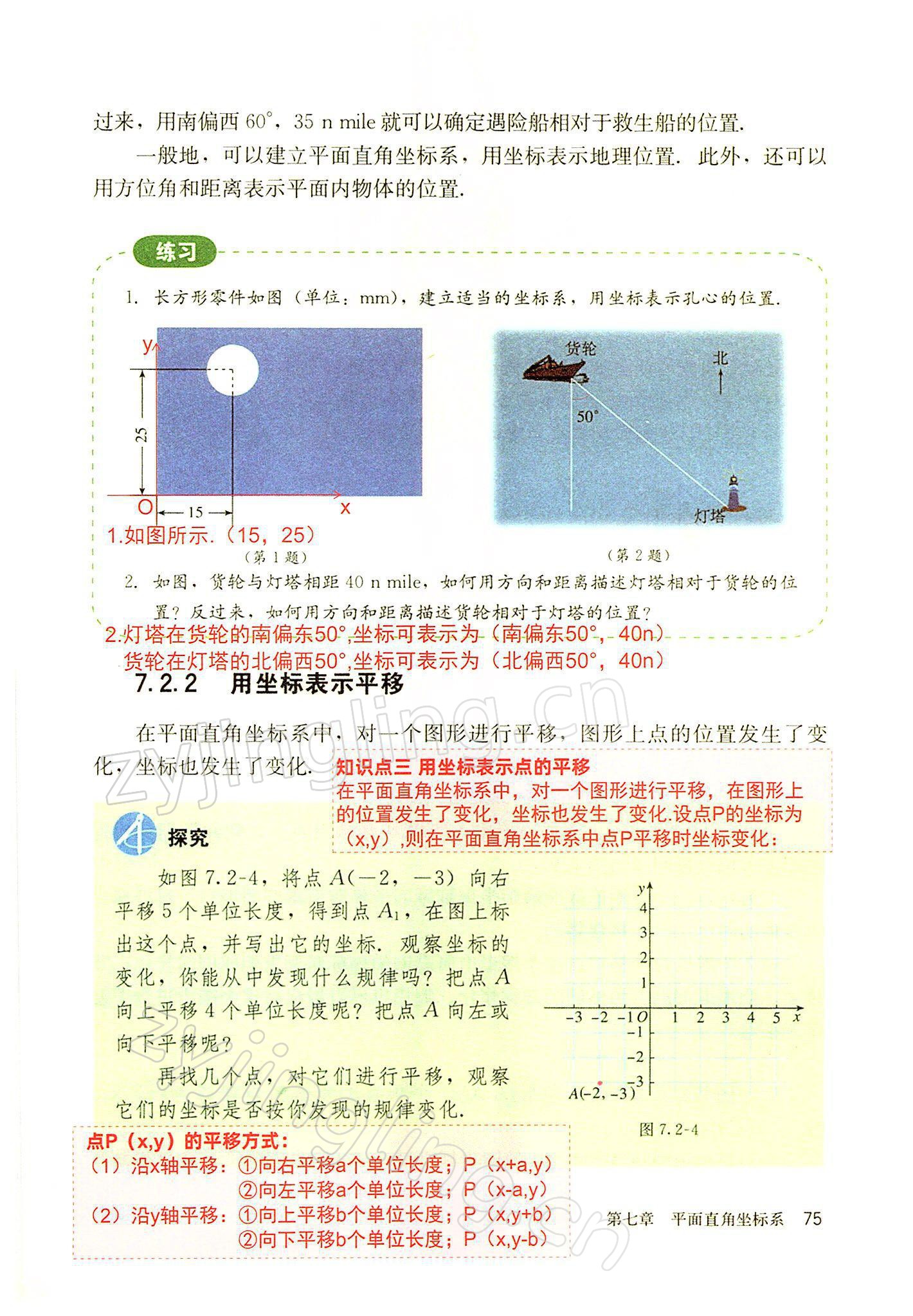 2022年教材课本七年级数学下册人教版参考答案第75页