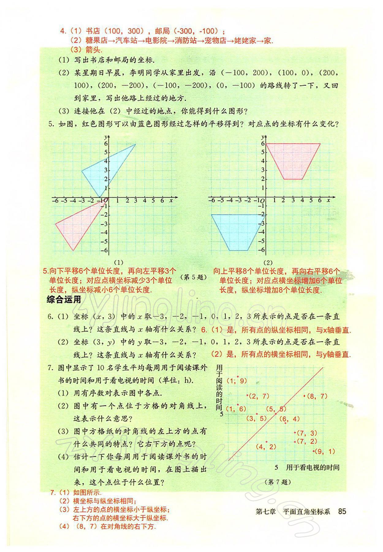 2022年教材课本七年级数学下册人教版参考答案第85页