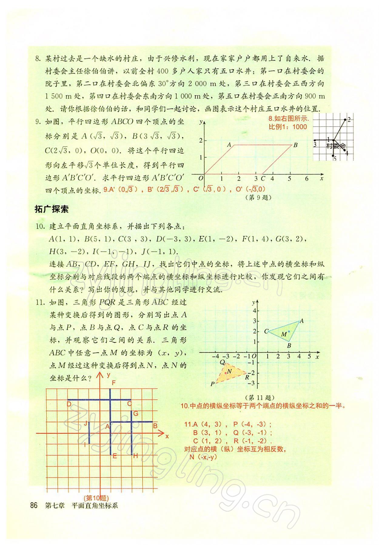 2022年教材课本七年级数学下册人教版参考答案第86页