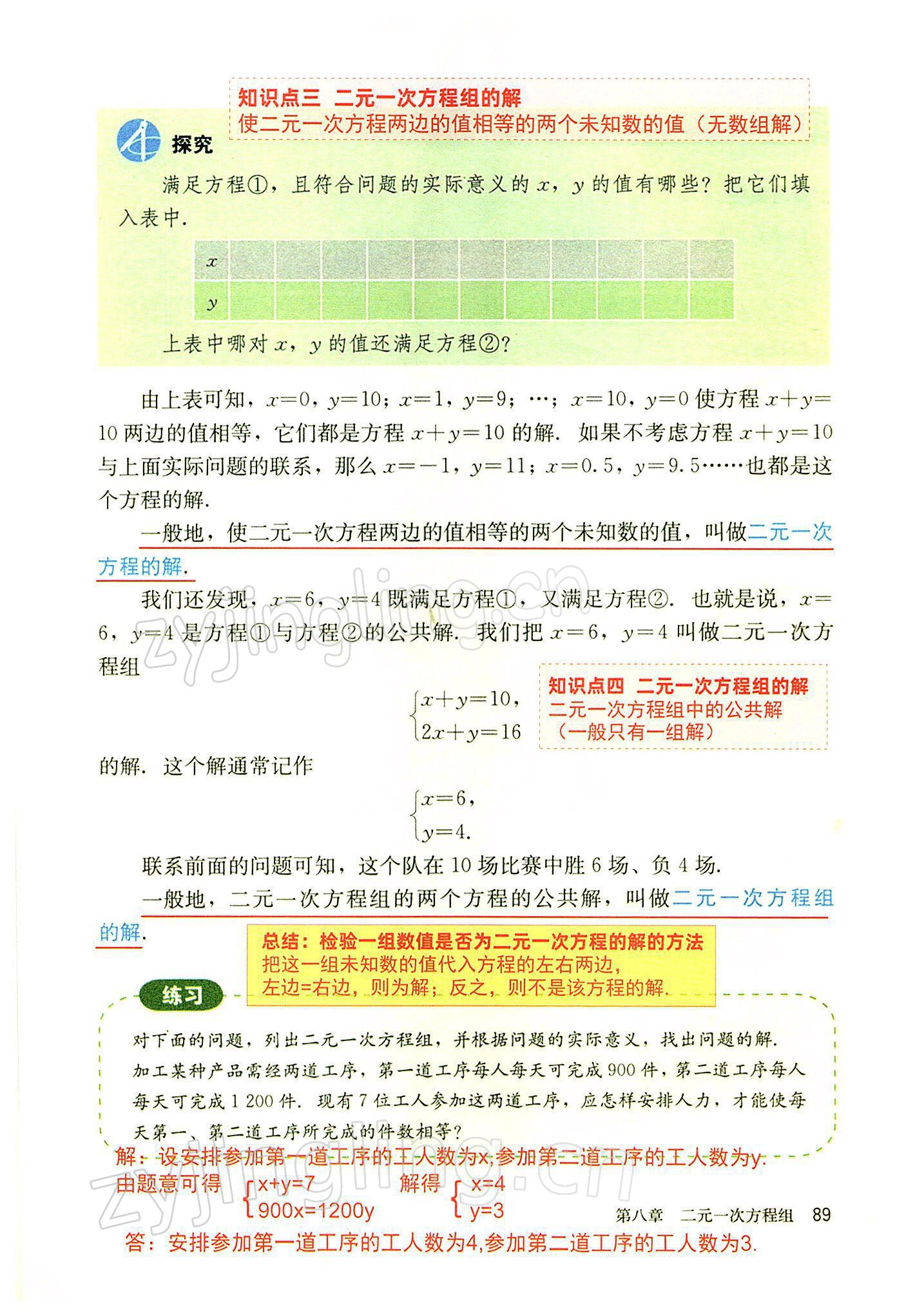 2022年教材课本七年级数学下册人教版参考答案第89页