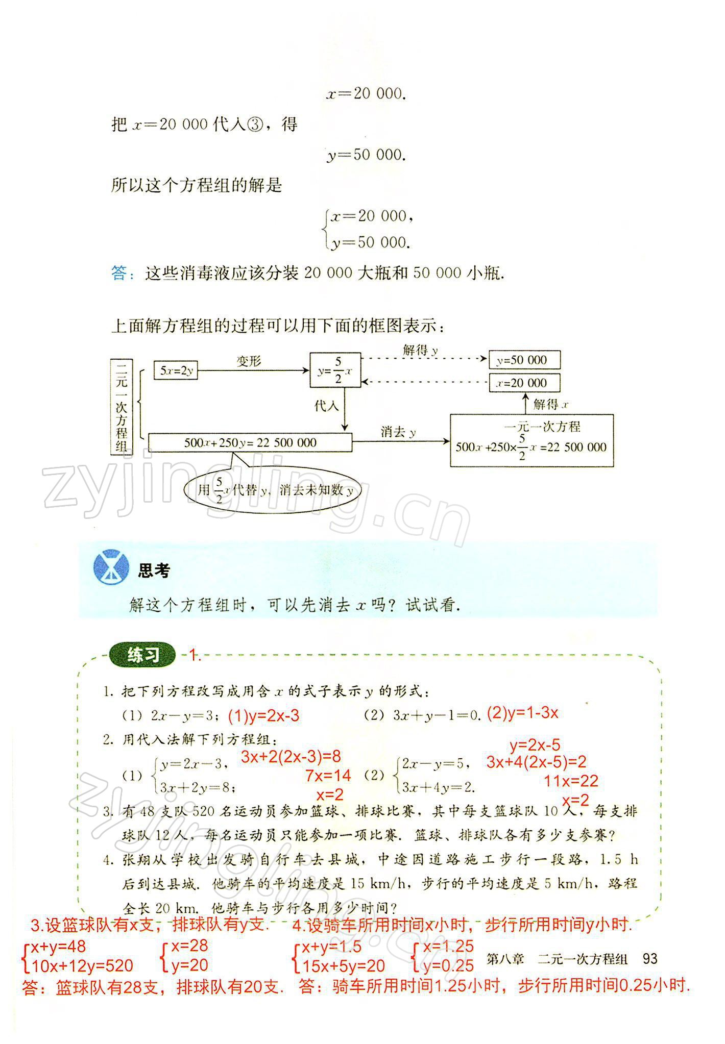 2022年教材课本七年级数学下册人教版参考答案第93页