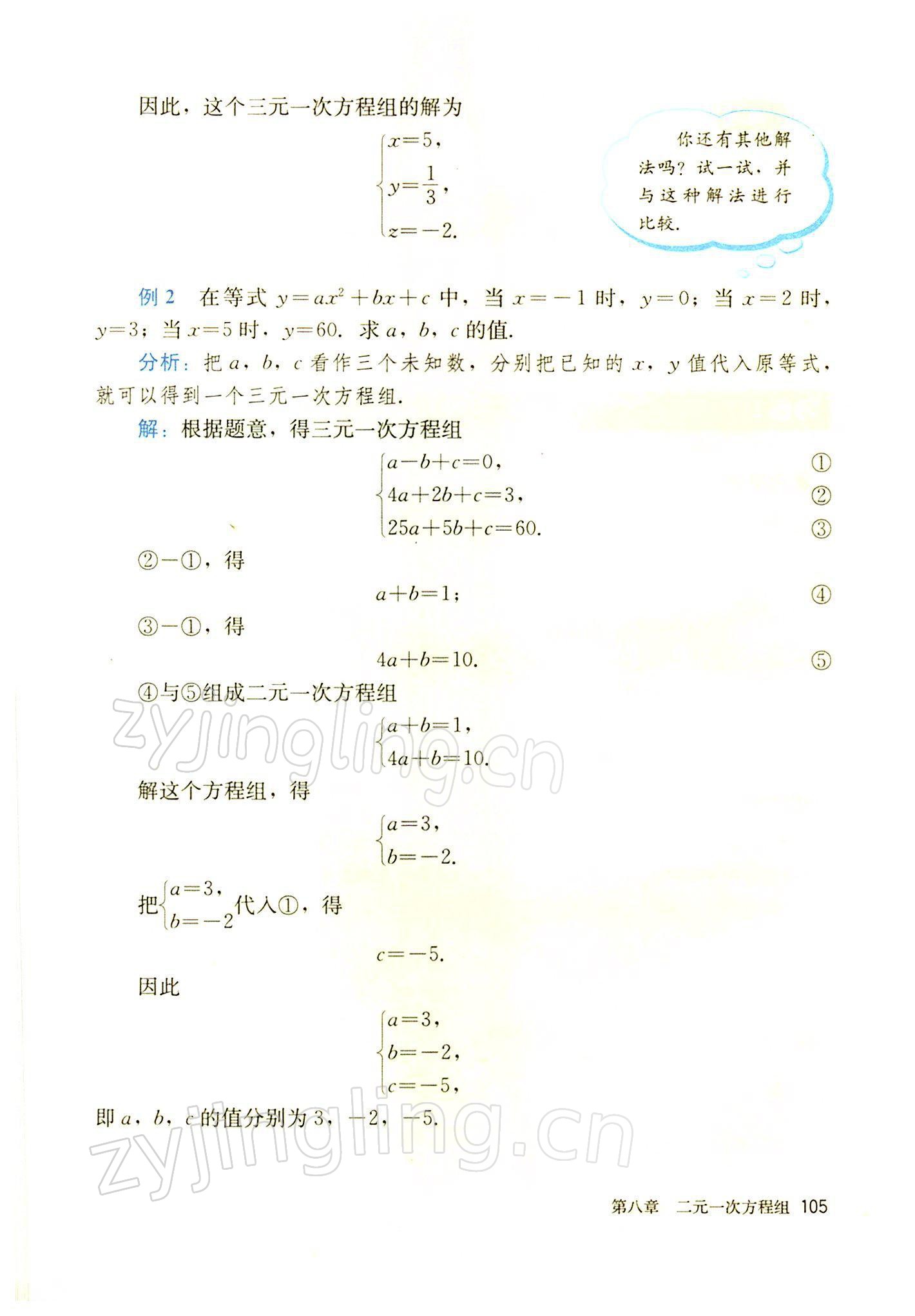 2022年教材课本七年级数学下册人教版参考答案第105页