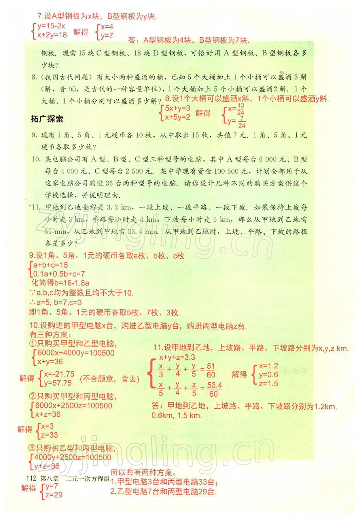 2022年教材课本七年级数学下册人教版参考答案第112页