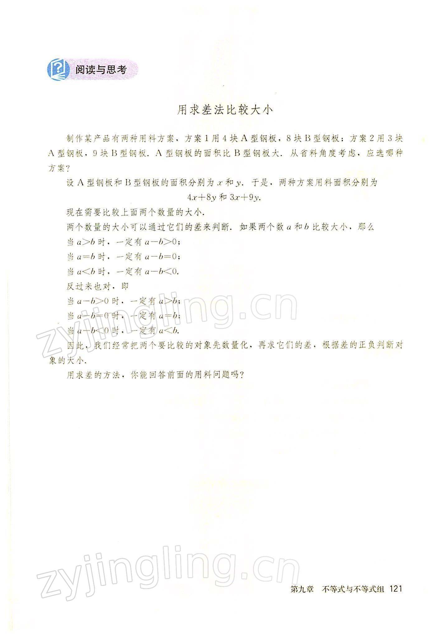2022年教材课本七年级数学下册人教版参考答案第121页
