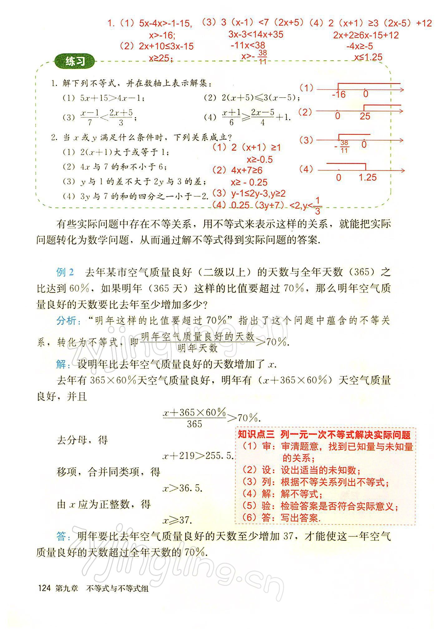 2022年教材课本七年级数学下册人教版参考答案第124页