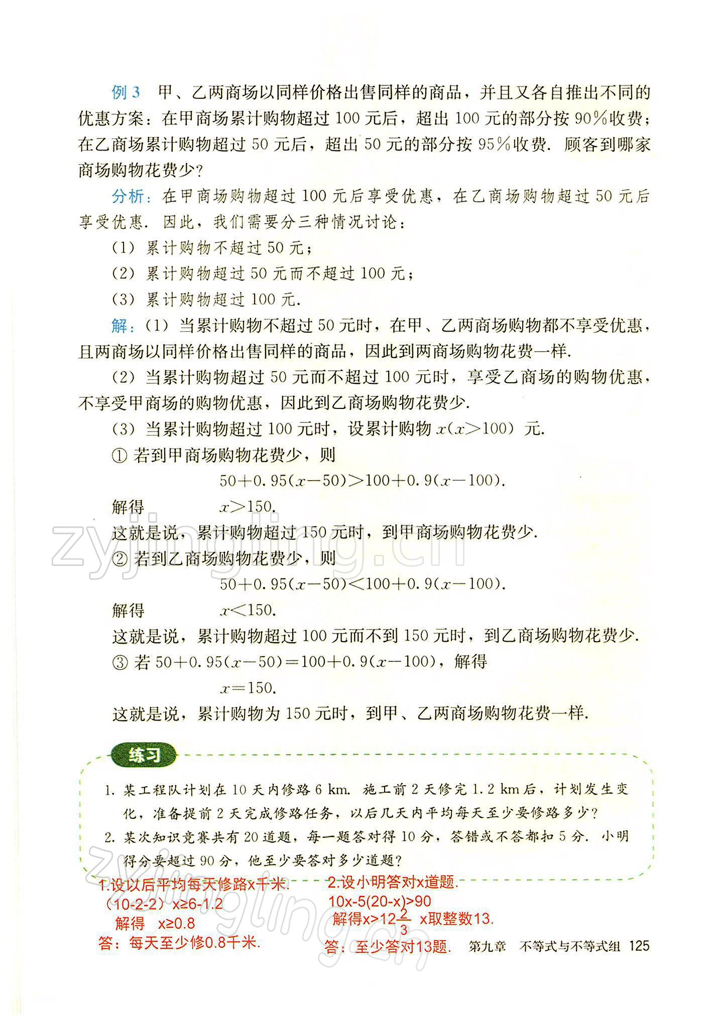 2022年教材课本七年级数学下册人教版参考答案第125页