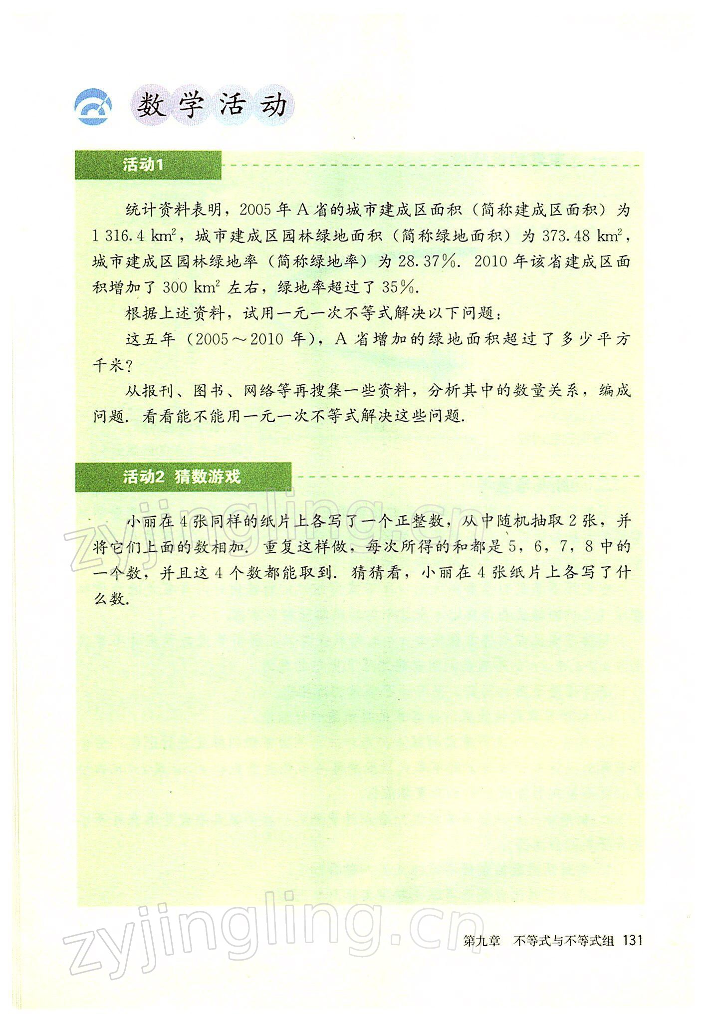 2022年教材课本七年级数学下册人教版参考答案第131页