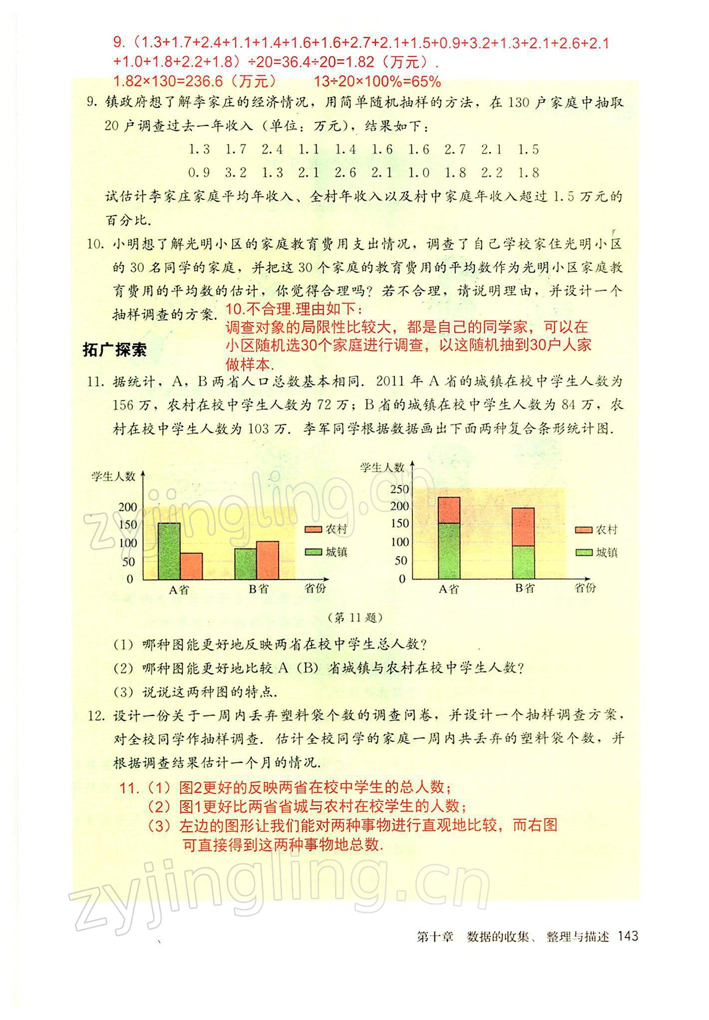 2022年教材课本七年级数学下册人教版参考答案第143页