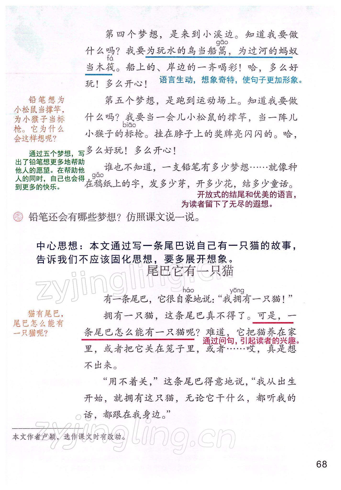 2022年教材课本三年级语文下册人教版参考答案第68页