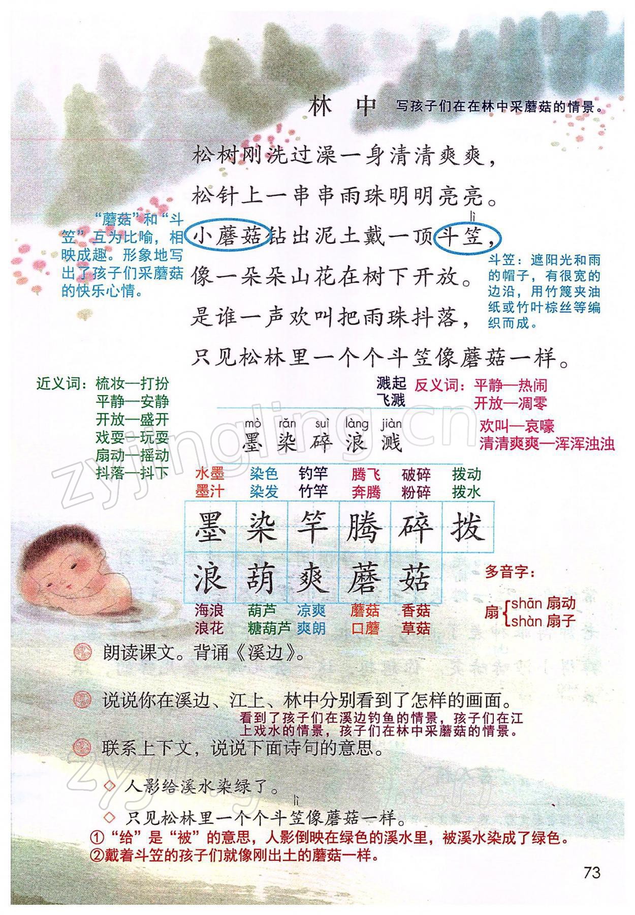 2022年教材课本三年级语文下册人教版参考答案第73页