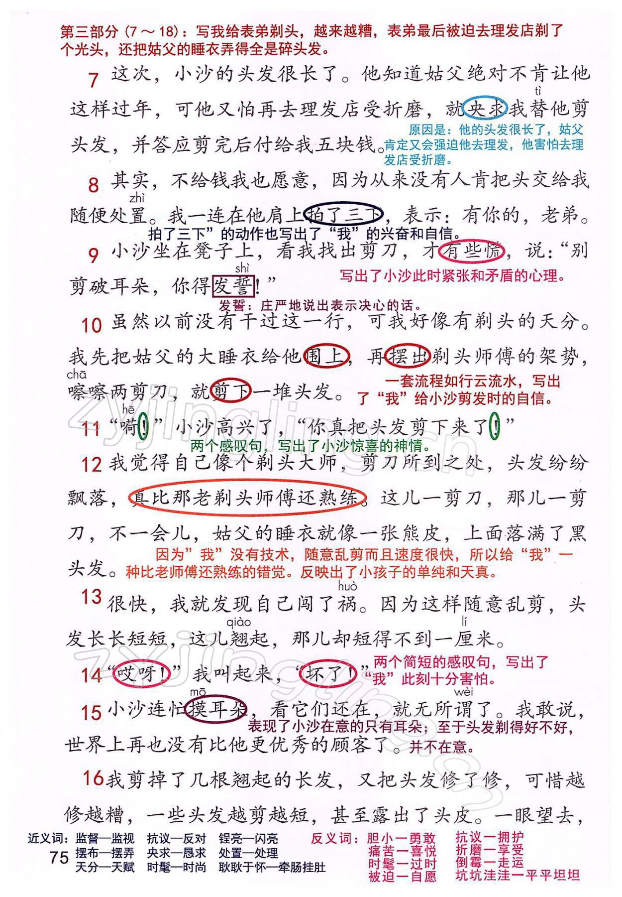 2022年教材课本三年级语文下册人教版参考答案第75页