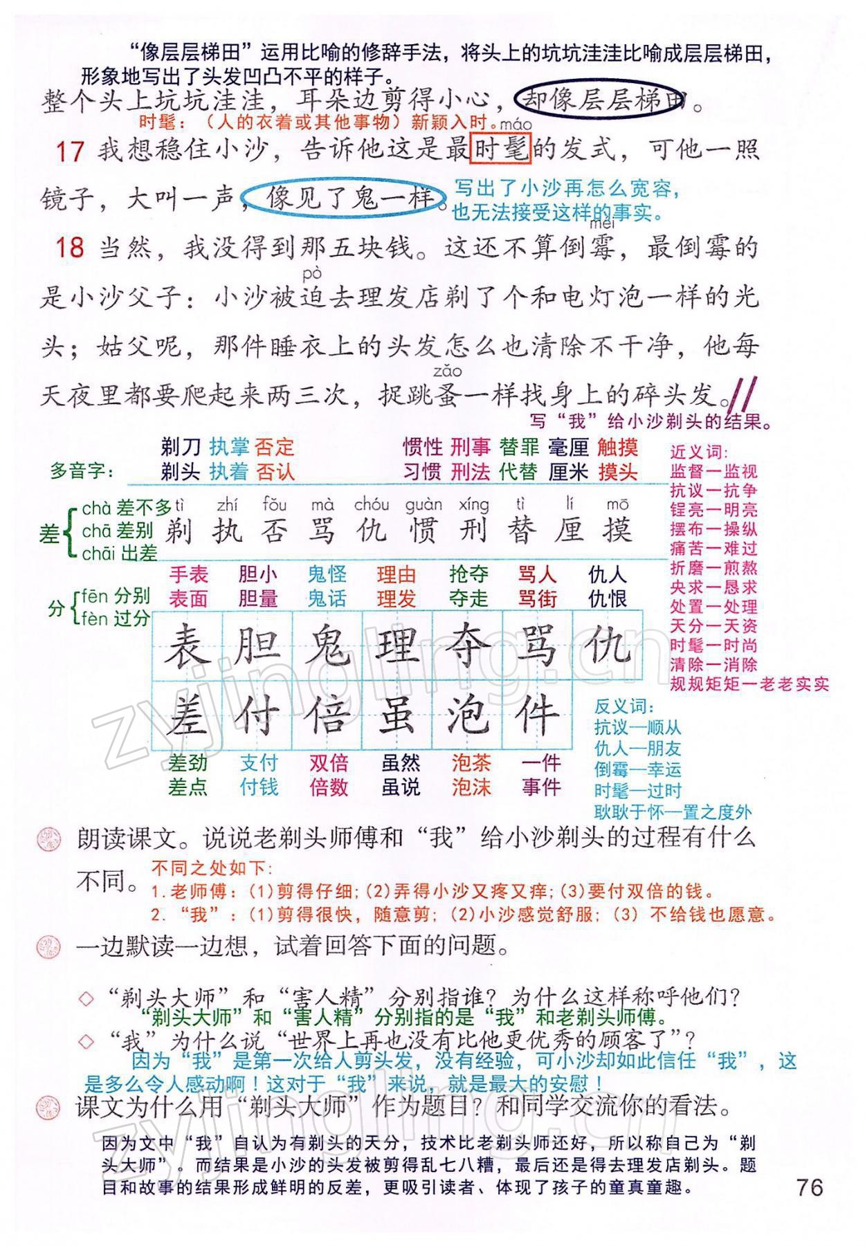 2022年教材课本三年级语文下册人教版参考答案第76页