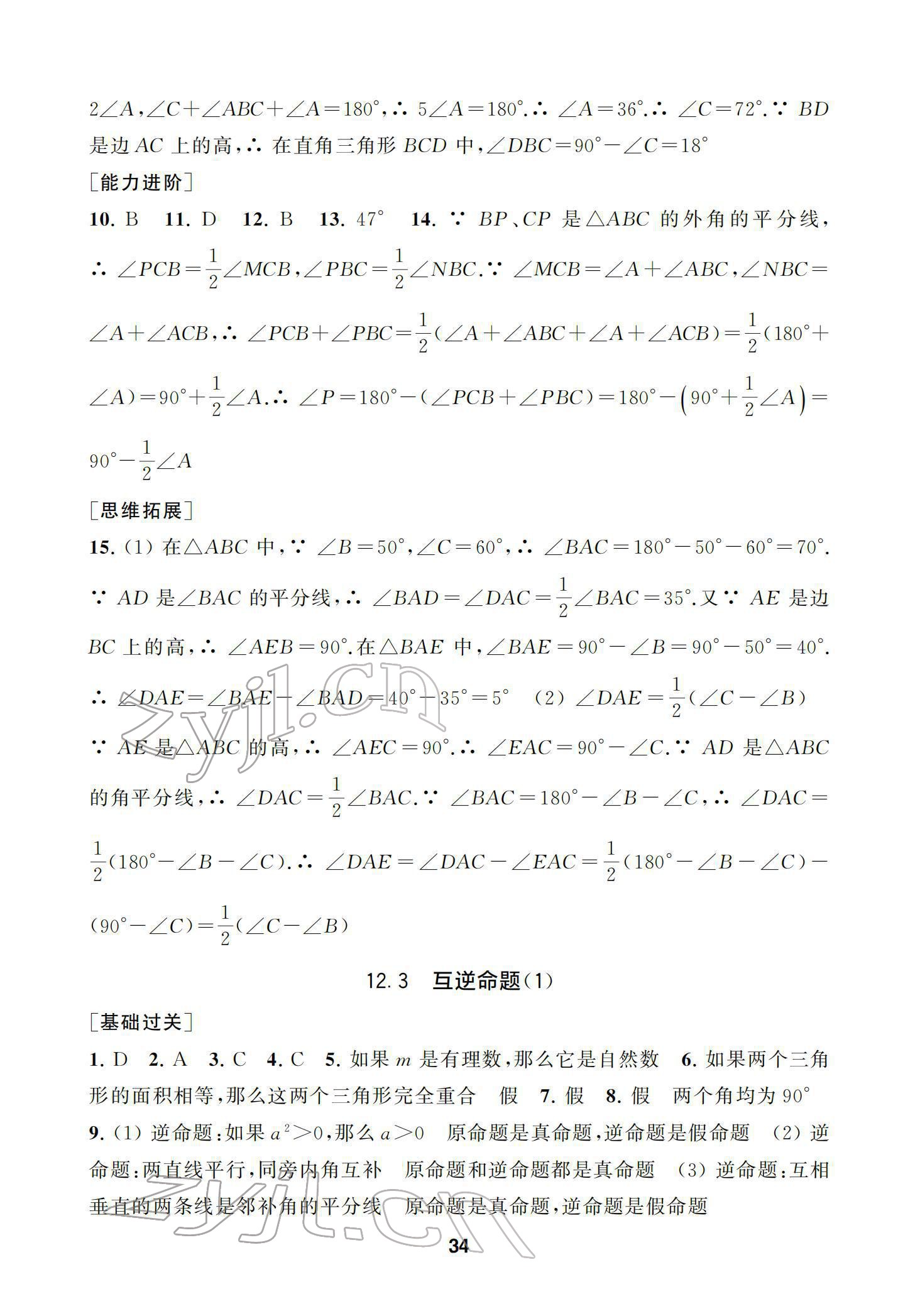 2022年综合素质随堂反馈七年级数学下册苏科版参考答案第34页