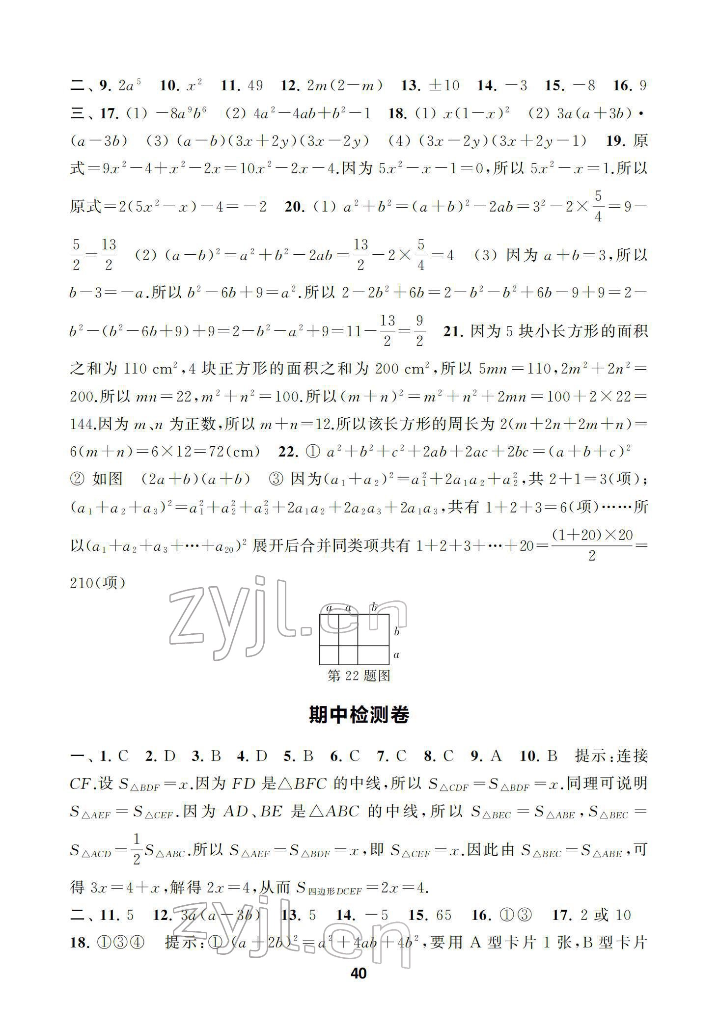 2022年综合素质随堂反馈七年级数学下册苏科版参考答案第40页