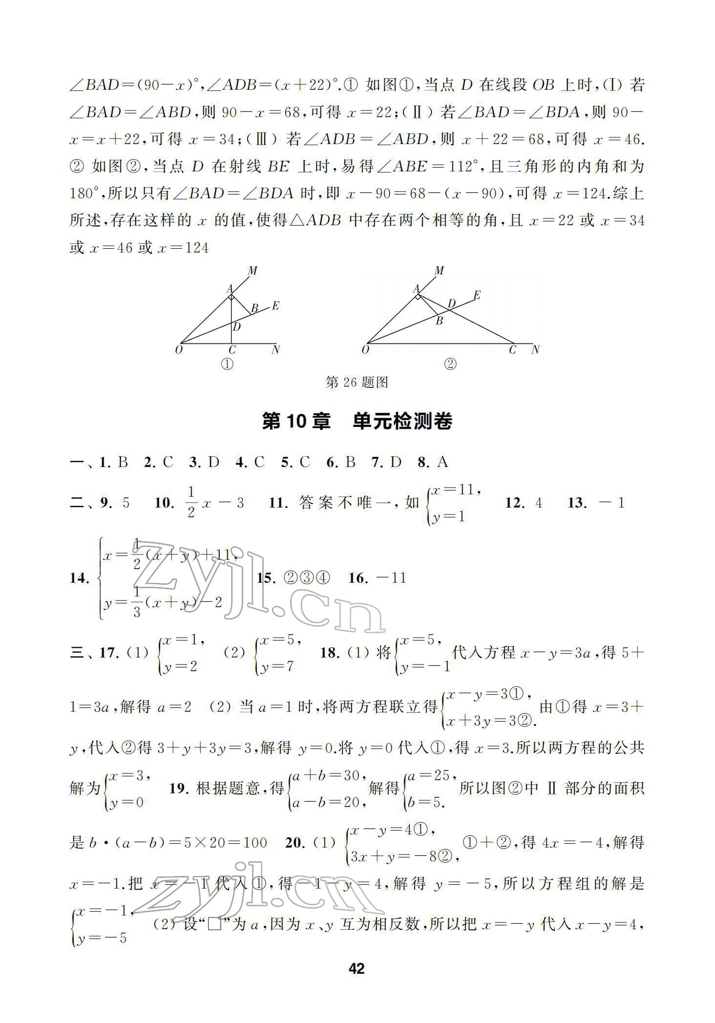 2022年综合素质随堂反馈七年级数学下册苏科版参考答案第42页