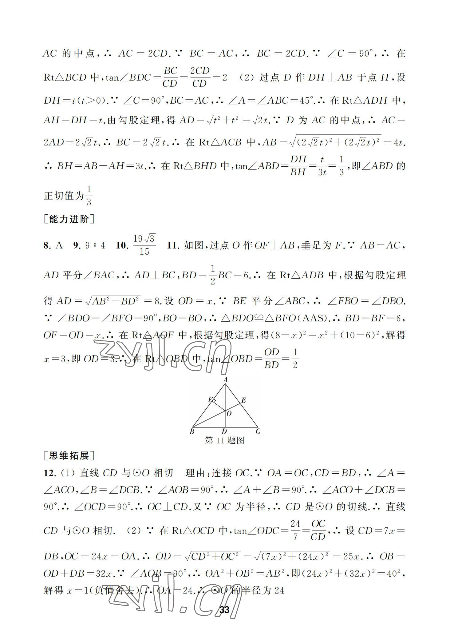 2022年综合素质学数学随堂反馈九年级下册苏科版参考答案第33页