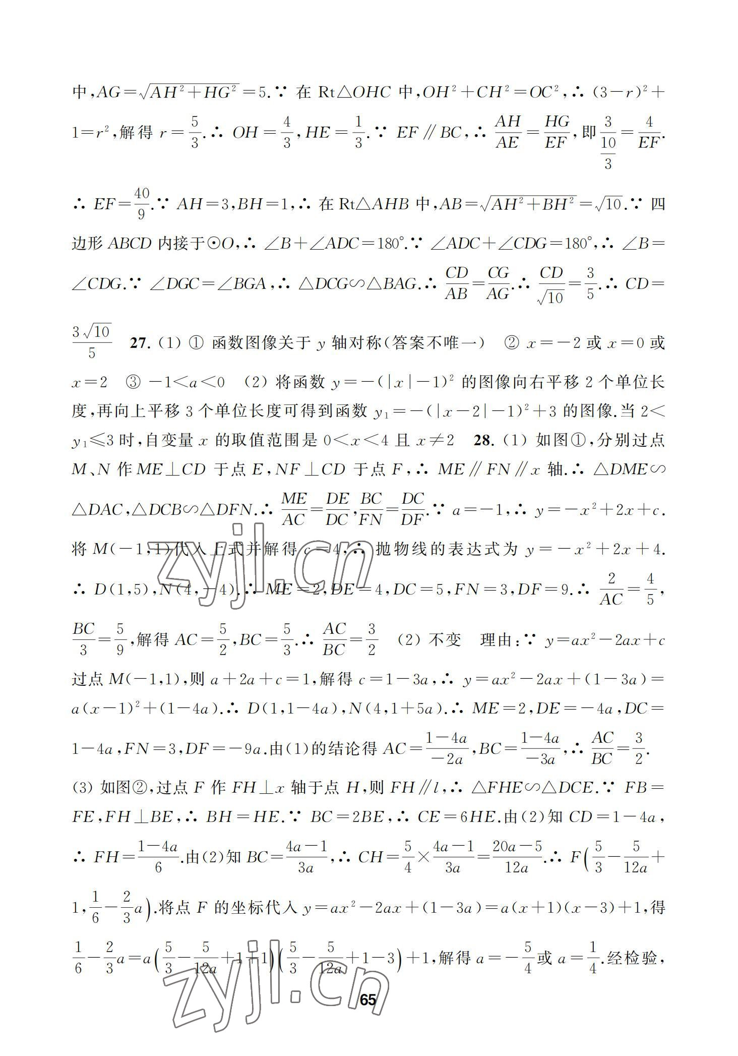 2022年综合素质学数学随堂反馈九年级下册苏科版参考答案第65页
