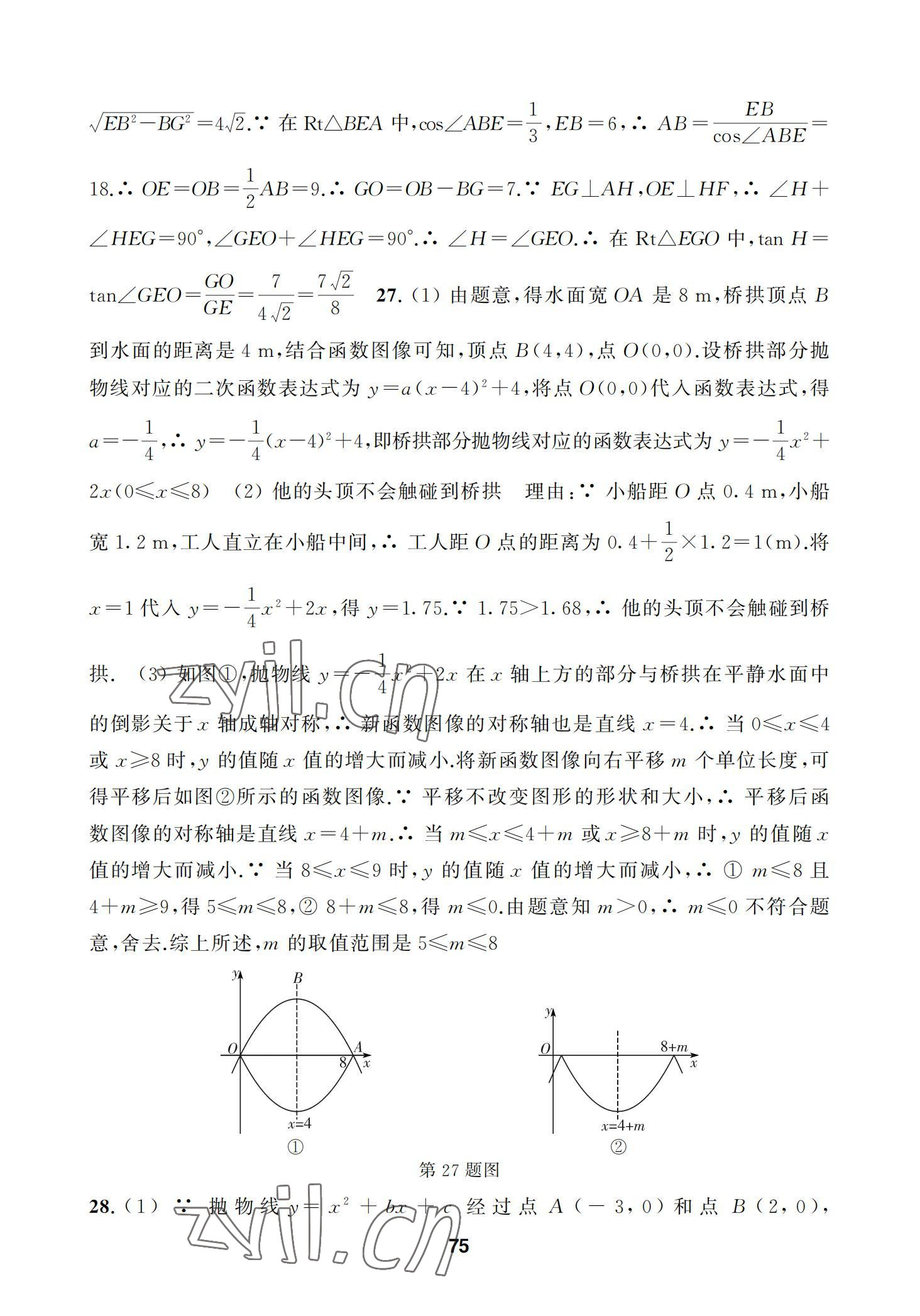 2022年综合素质学数学随堂反馈九年级下册苏科版参考答案第75页