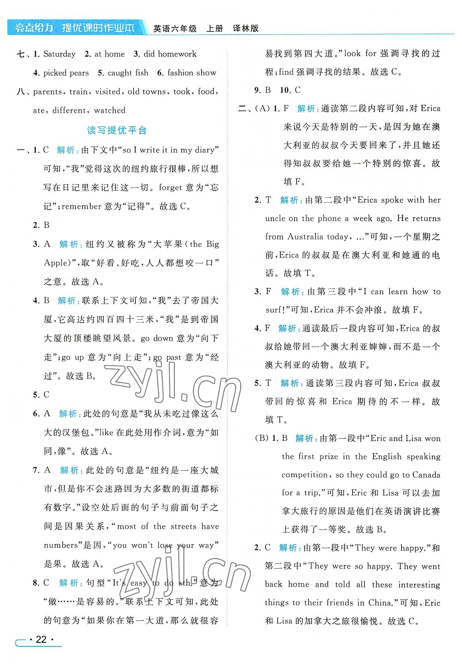 2022年亮点给力提优课时作业本六年级英语上册译林版参考答案第22页