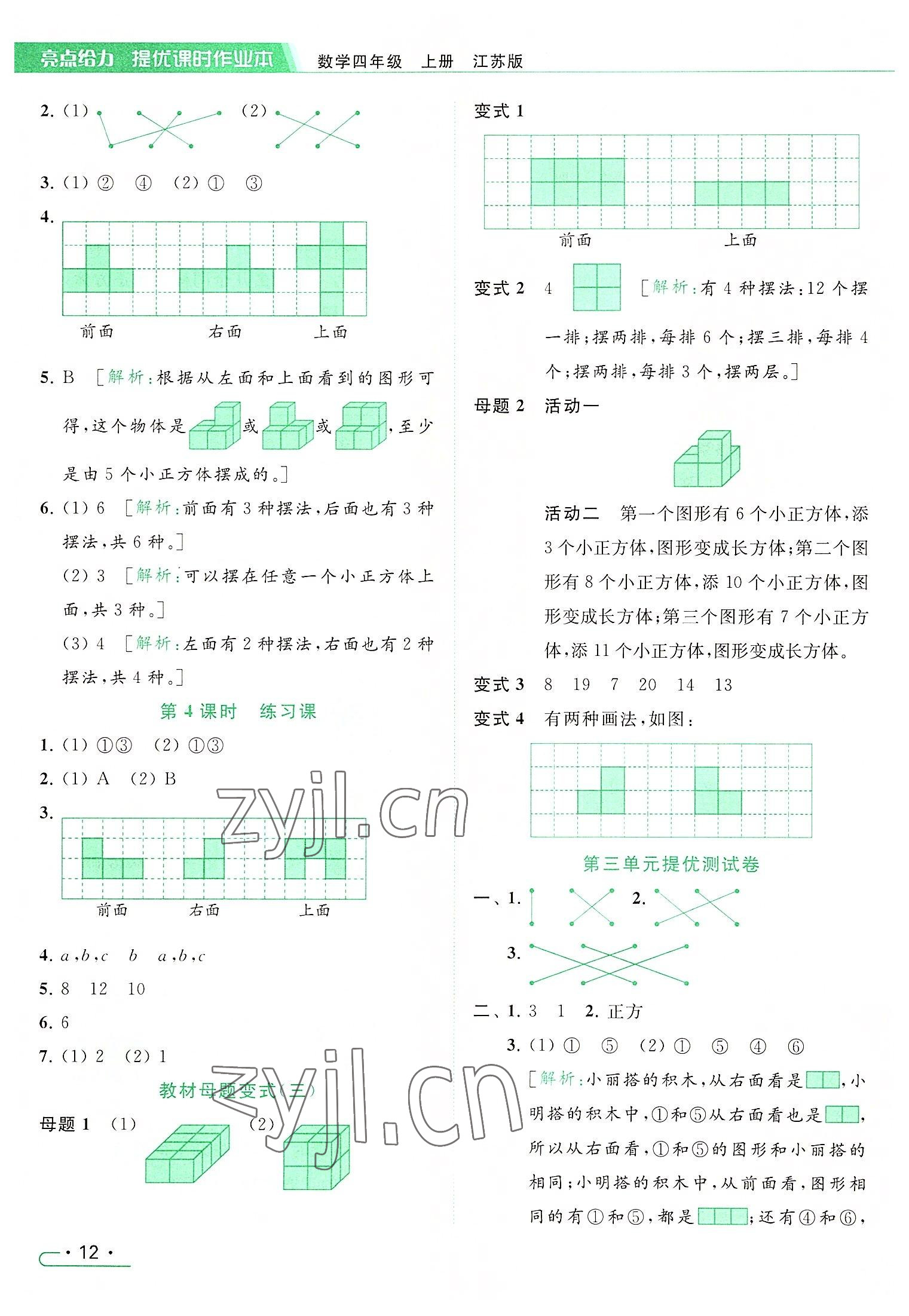 2022年亮点给力提优课时作业本四年级数学上册江苏版参考答案第12页
