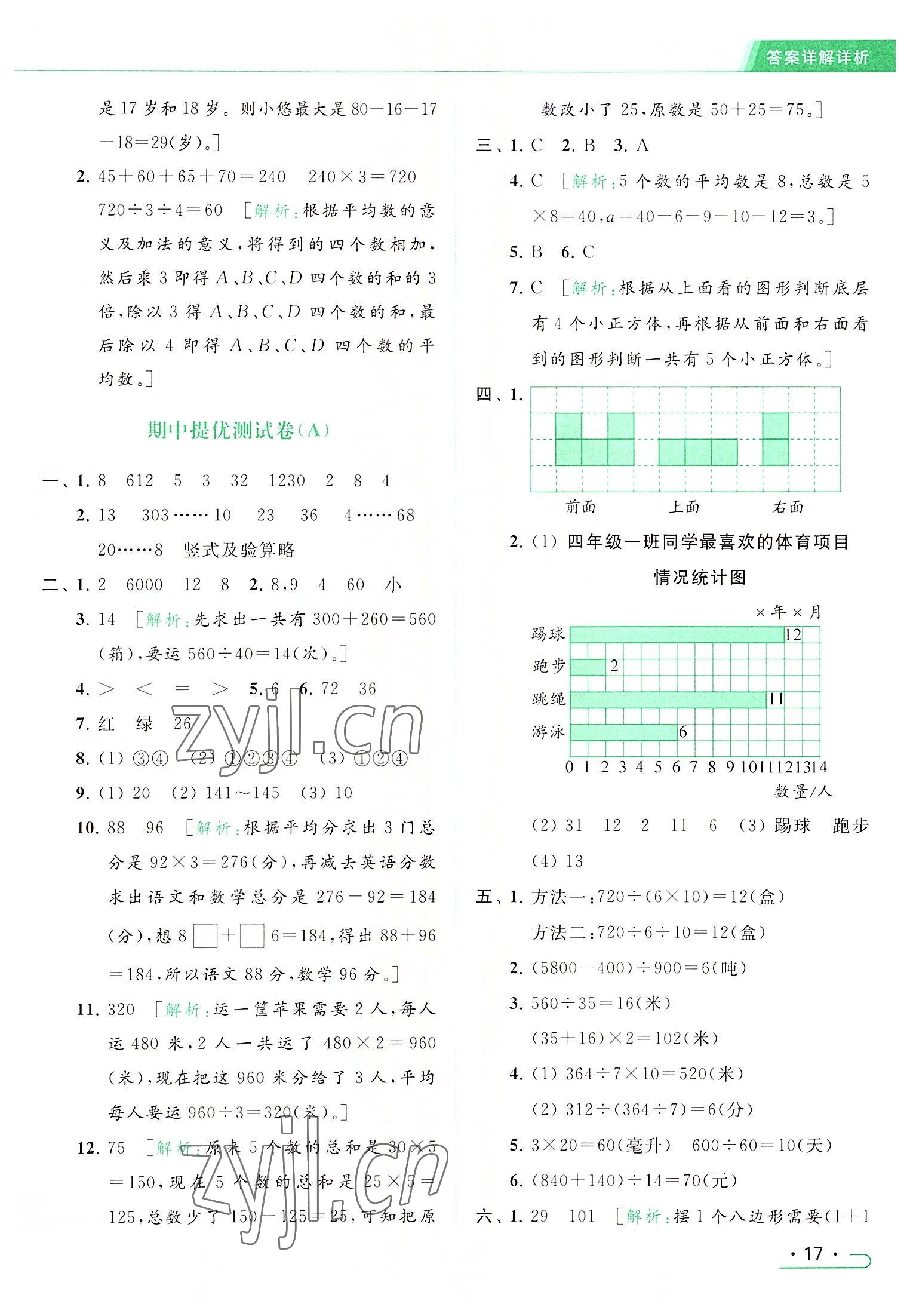2022年亮点给力提优课时作业本四年级数学上册江苏版参考答案第17页