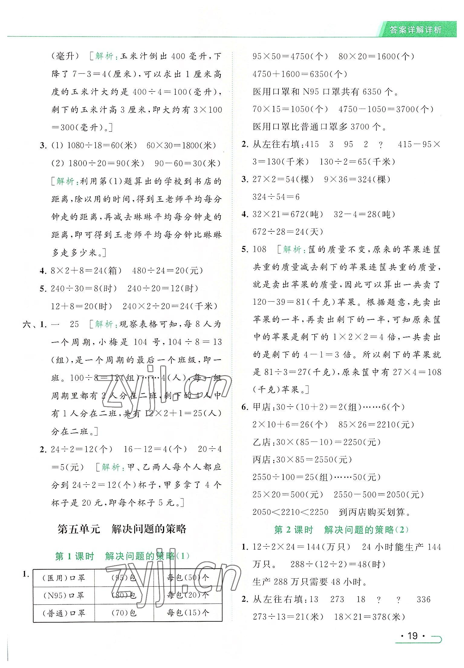 2022年亮点给力提优课时作业本四年级数学上册江苏版参考答案第19页