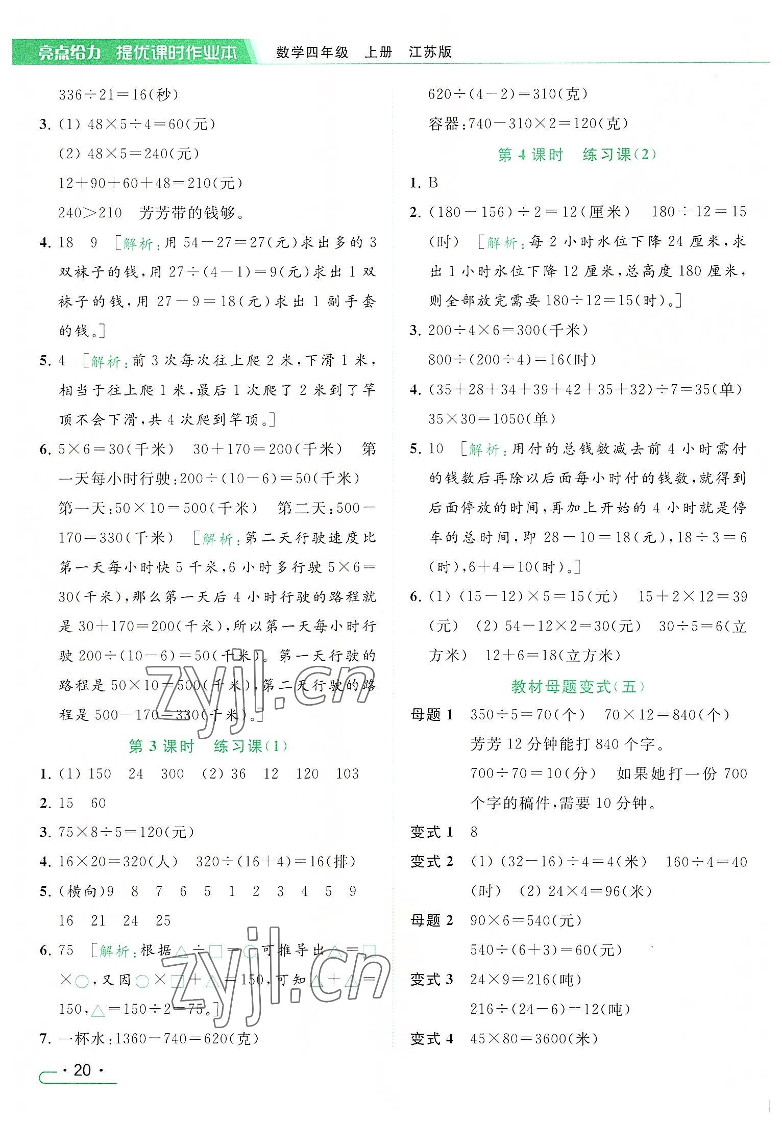2022年亮点给力提优课时作业本四年级数学上册江苏版参考答案第20页